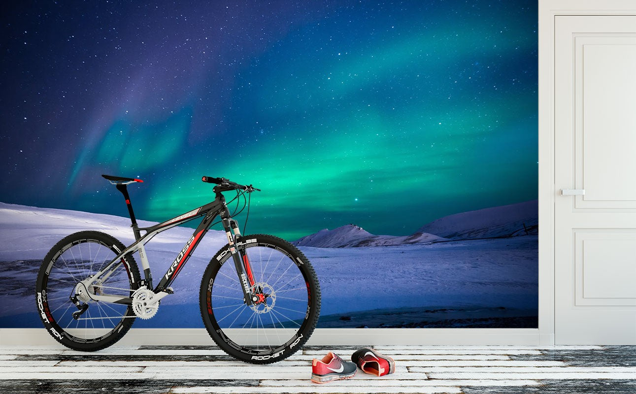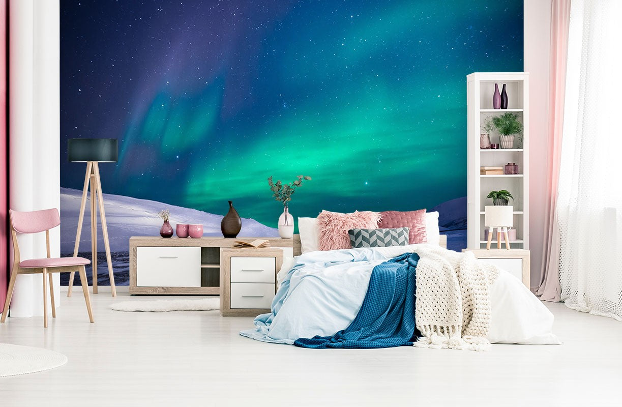 Aurora Arctic Nature Sky Green Wallpaper Mural,Self-Adhesive Peel And Stick 3D Wall Mural,Designer Removable Wall Decor