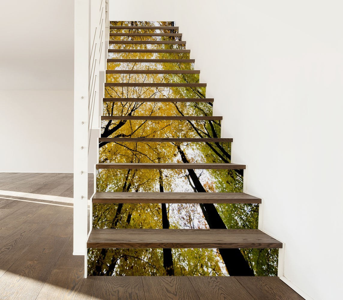 Autumn Leaves Forest Seasons Orange Stair Riser Decals, Waterproof Removable Staircase Decals, Vinyl Peel And Stick Stairs Decal Stickers