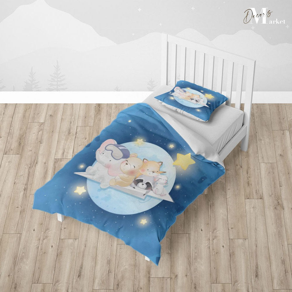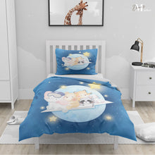 Baby Animal Friends Duvet Cover Set w Pillow Cover, Blue Art Watercolor 3D Quilt Cover, Single Double Queen King Size Doona Cover