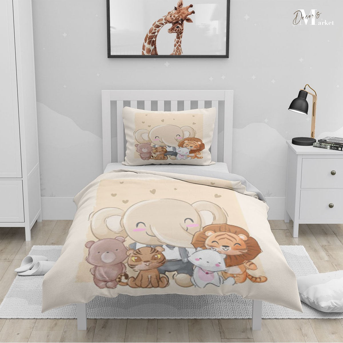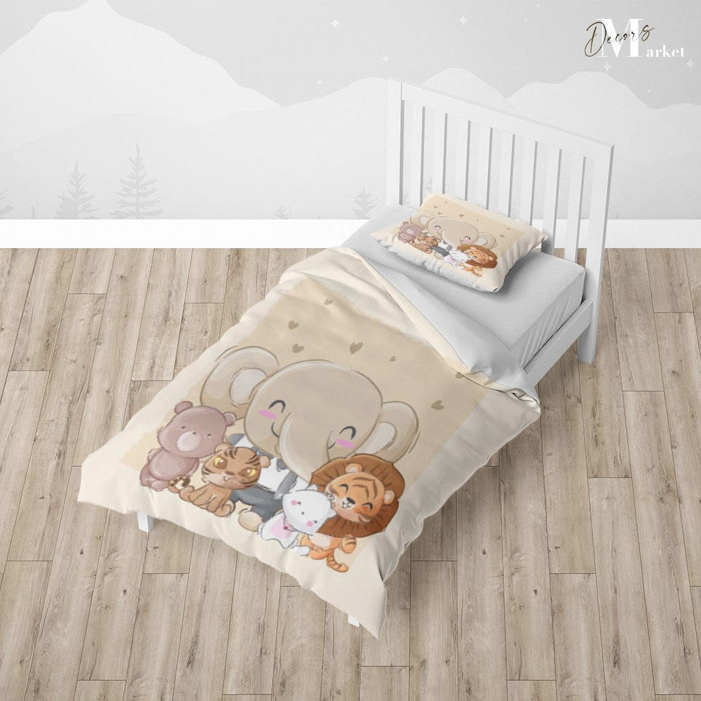 Baby Animal Friends Duvet Cover Set w Pillow Cover, Brown Art Watercolor 3D Quilt Cover, Single Double Queen King Size Doona Cover