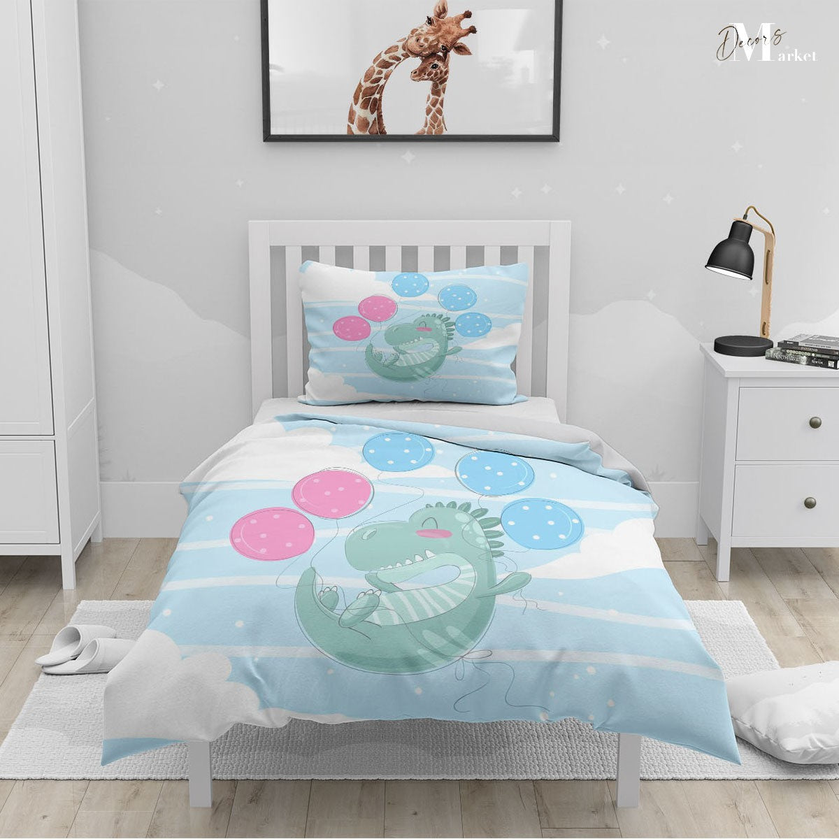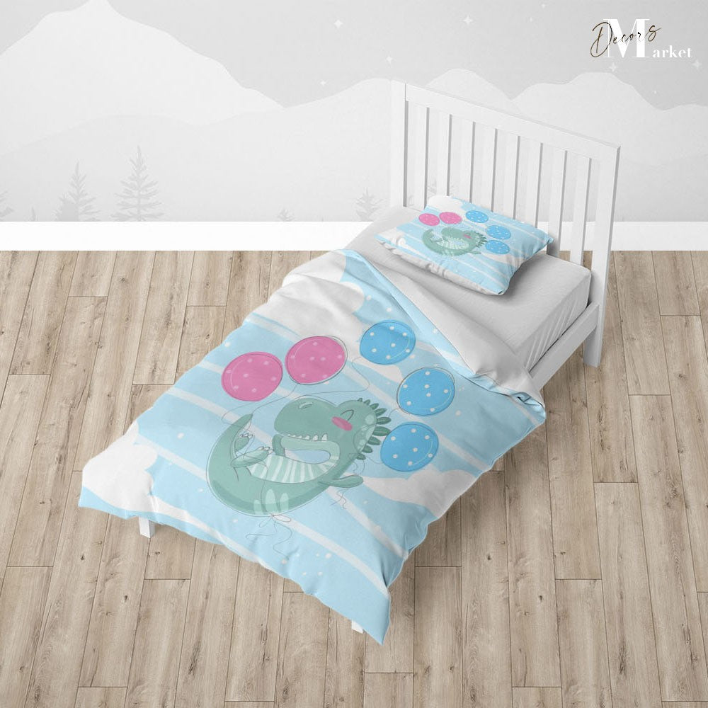 Baby Gator Baloon Duvet Cover Set w Pillow Cover, Blue Art Watercolor 3D Quilt Cover, Single Double Queen King Size Doona Cover