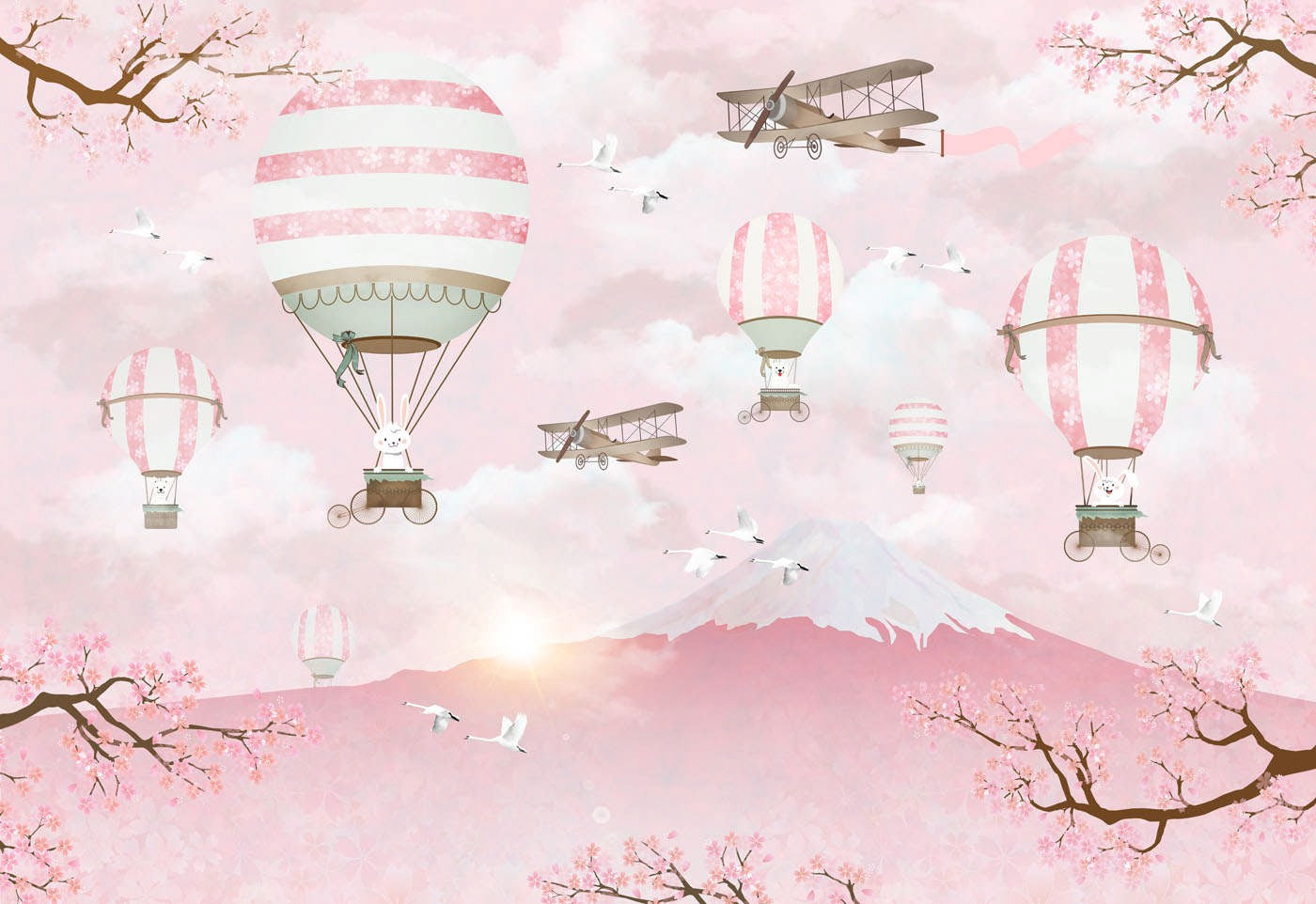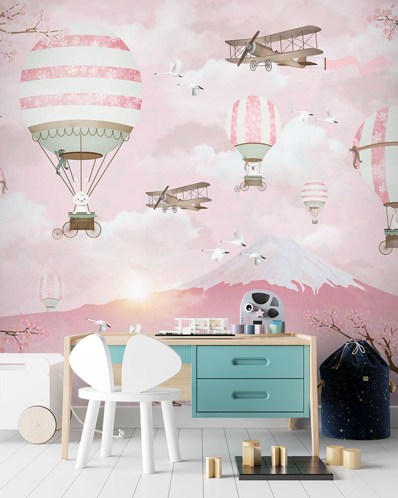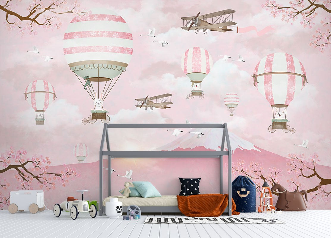 Balloon Glider Kids Vehicles Pink Wallpaper Mural,Self-Adhesive Peel And Stick 3D Wall Art,Australian Company Bedroom Wall Decor