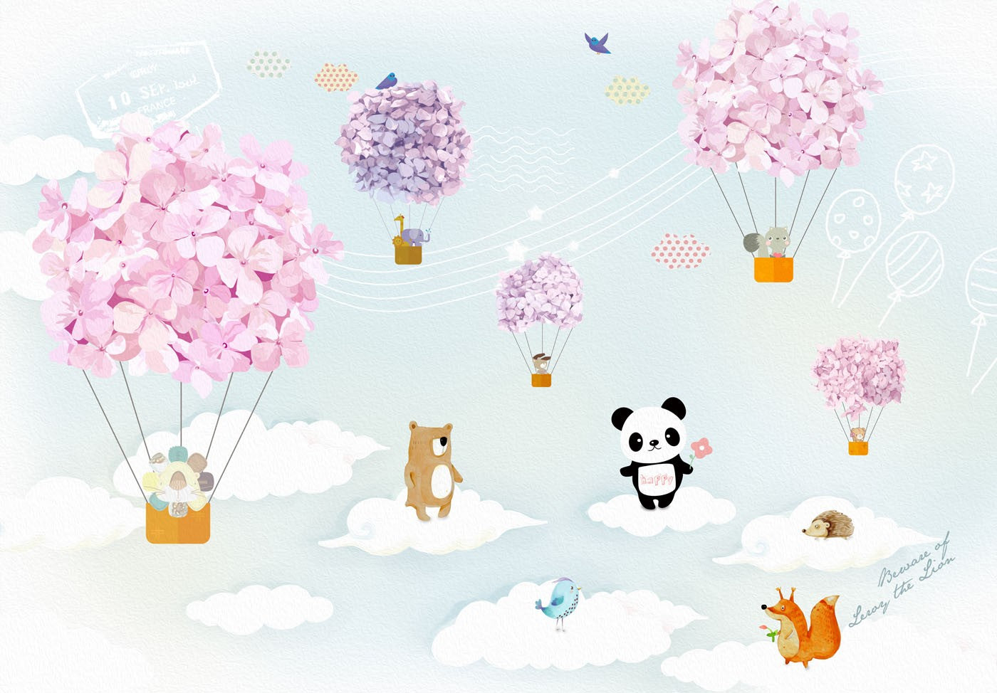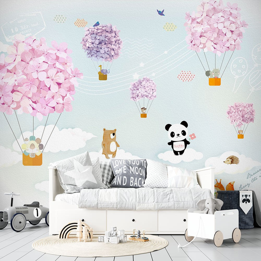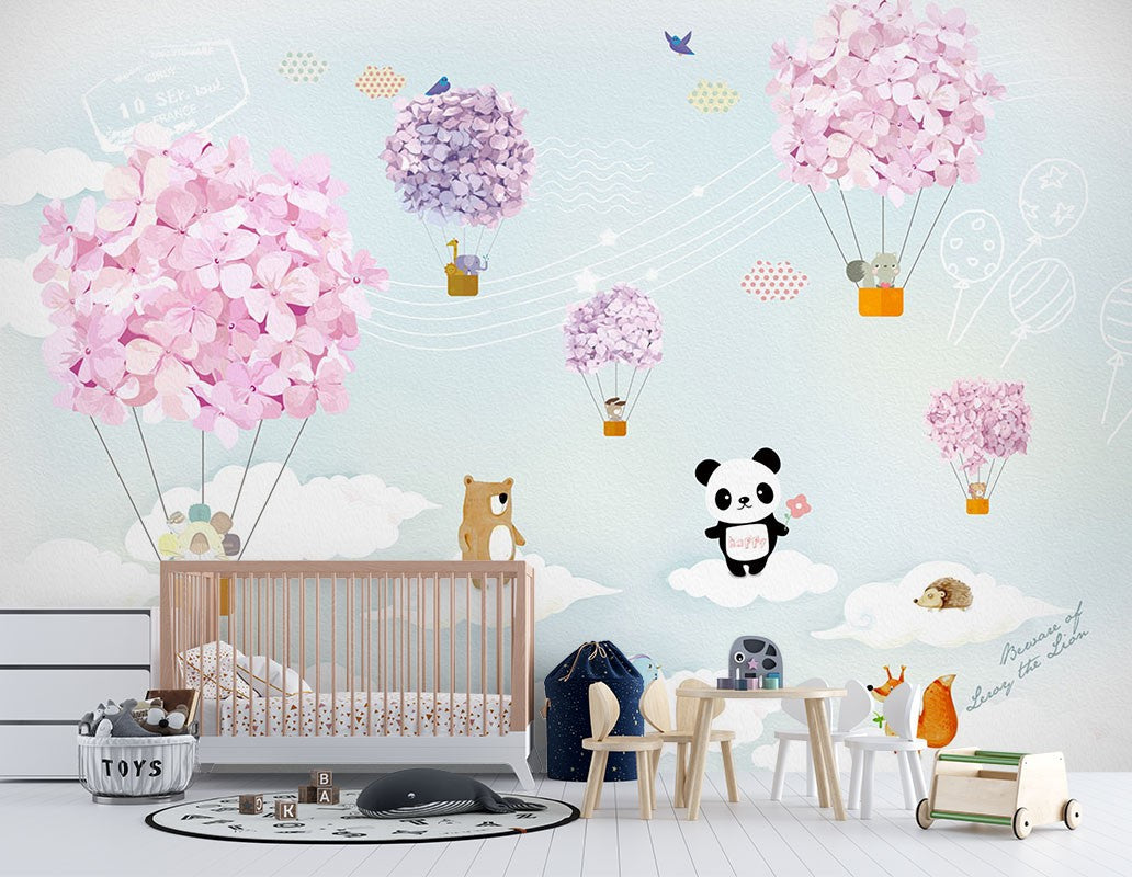 Balloon Panda Kids Colorful Pink Wallpaper Mural,Self-Adhesive Peel And Stick 3D Wall Decor,Bedroom Australian Company Wall Decor