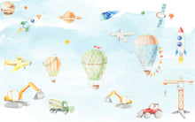 Balloon Spaceship Kids Vehicles Green Wallpaper Mural,Self-Adhesive Peel And Stick 3D Wall Decal,Bedroom Removable Wall Decor