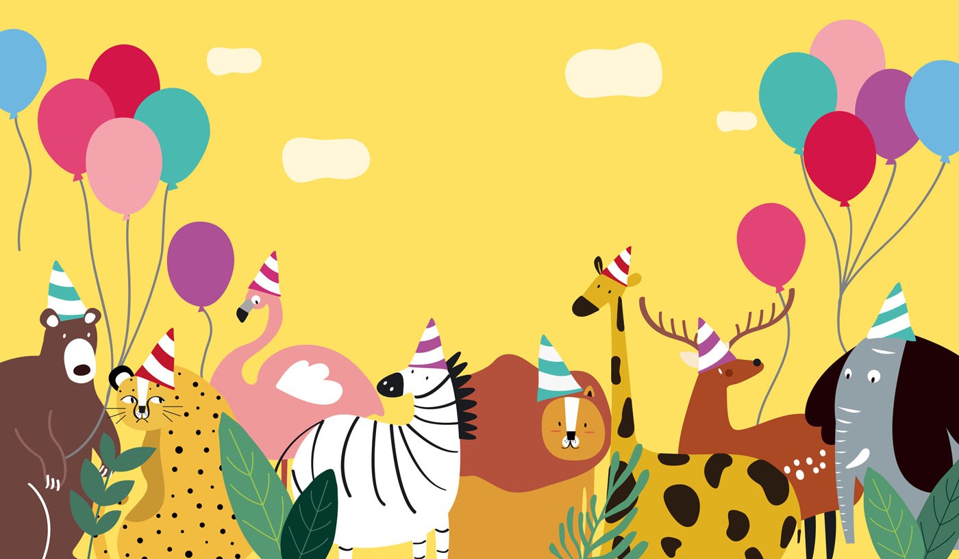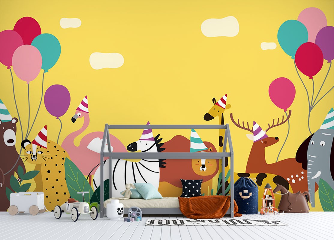 Balloon Zoo Kids Animal Yellow Wallpaper Mural,Self-Adhesive Peel And Stick 3D Wall Decor,Designer Removable Wall Decor