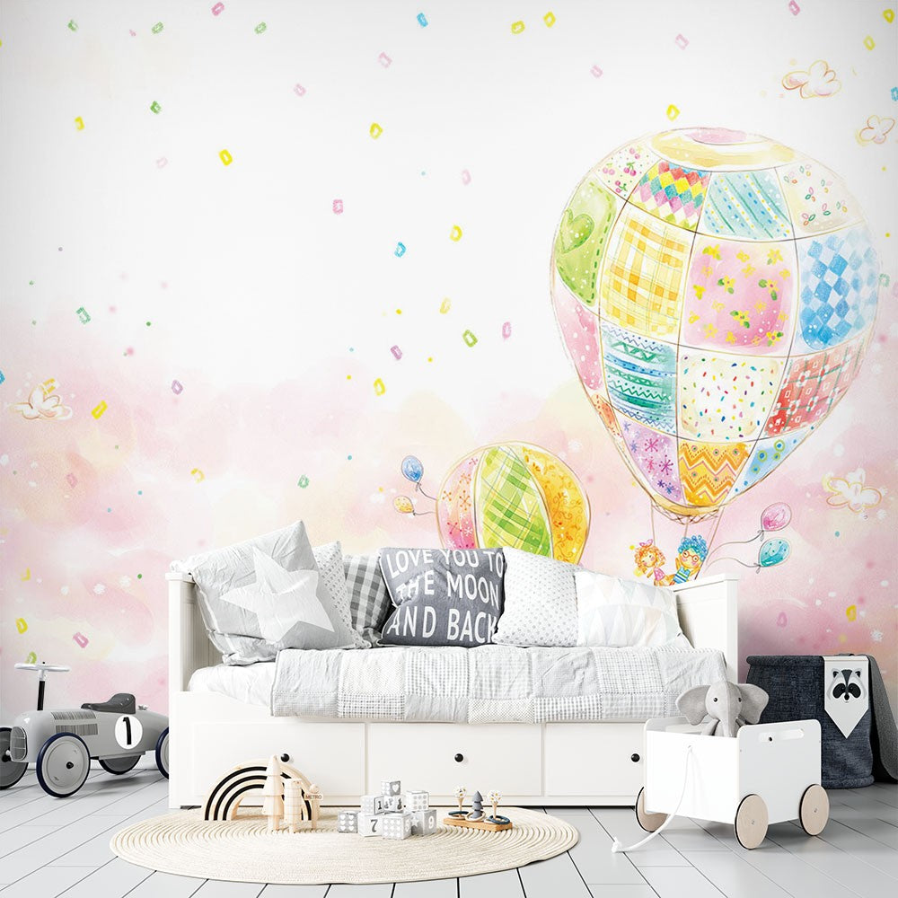 Balloons Kids Fantasy Pink Wallpaper Mural,Self-Adhesive Peel And Stick 3D Wall Mural,Removable Bedroom Wall Decor