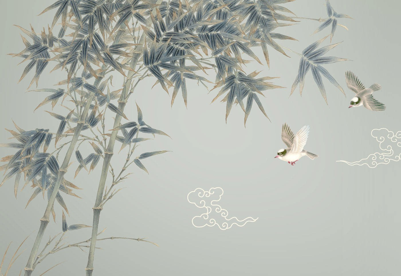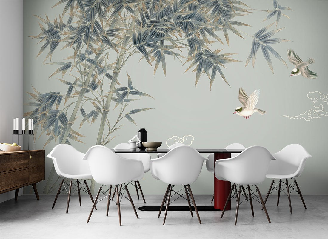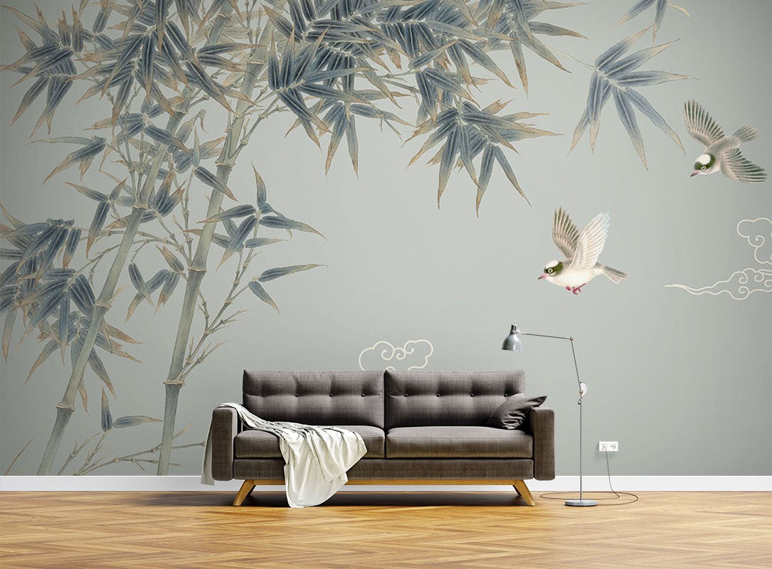 Bamboo Birds Floral Leaves Green Wallpaper Mural,Self-Adhesive Peel And Stick 3D Wall Decor,Removable Australian Company Wall Decor