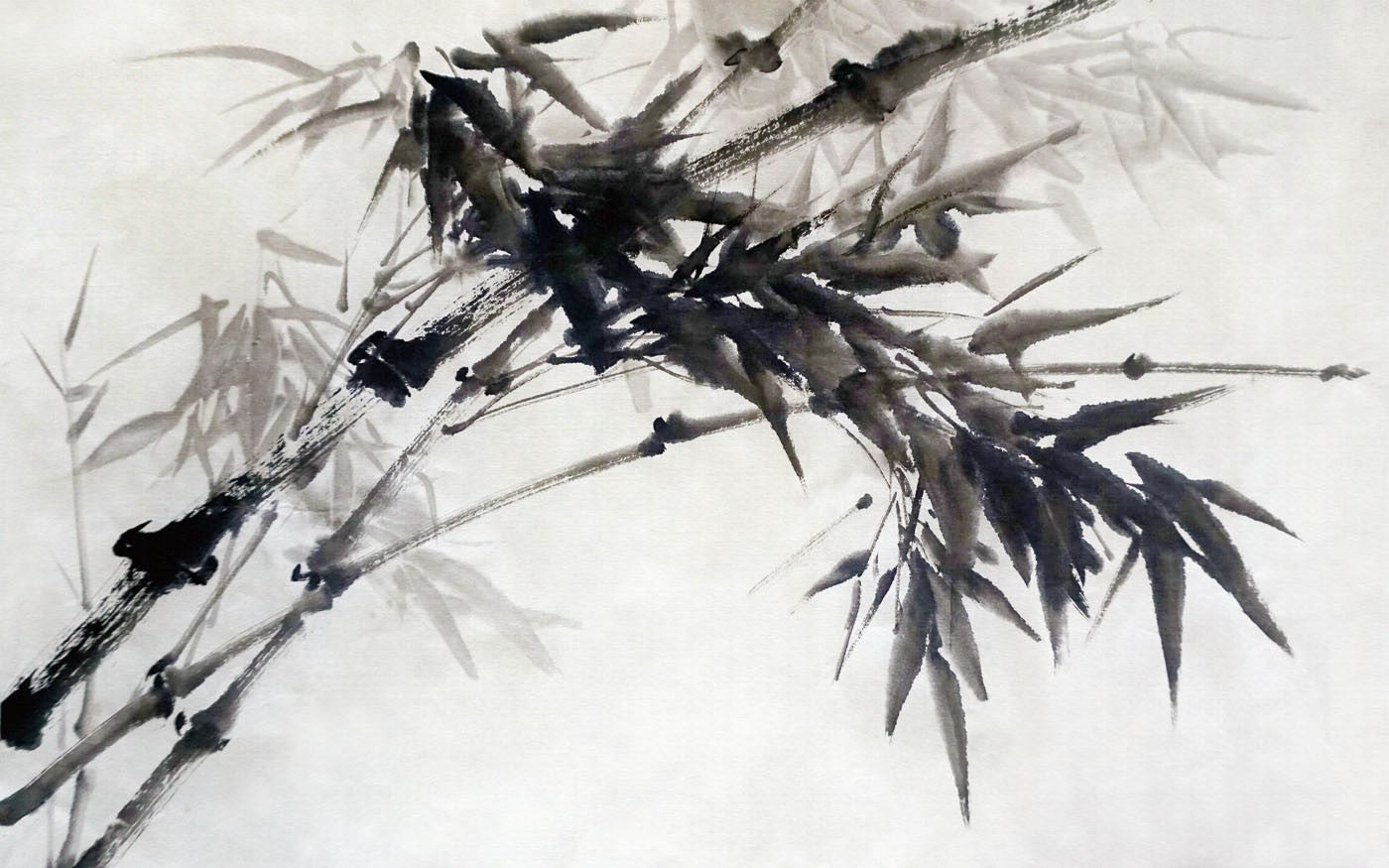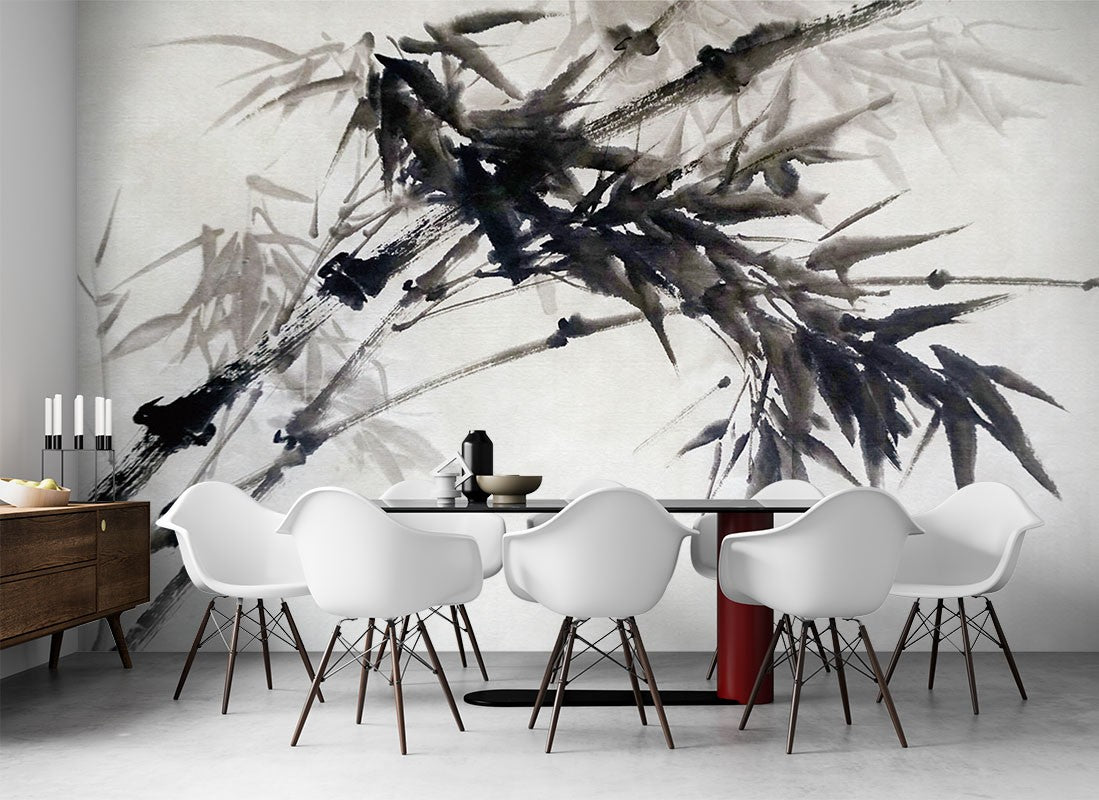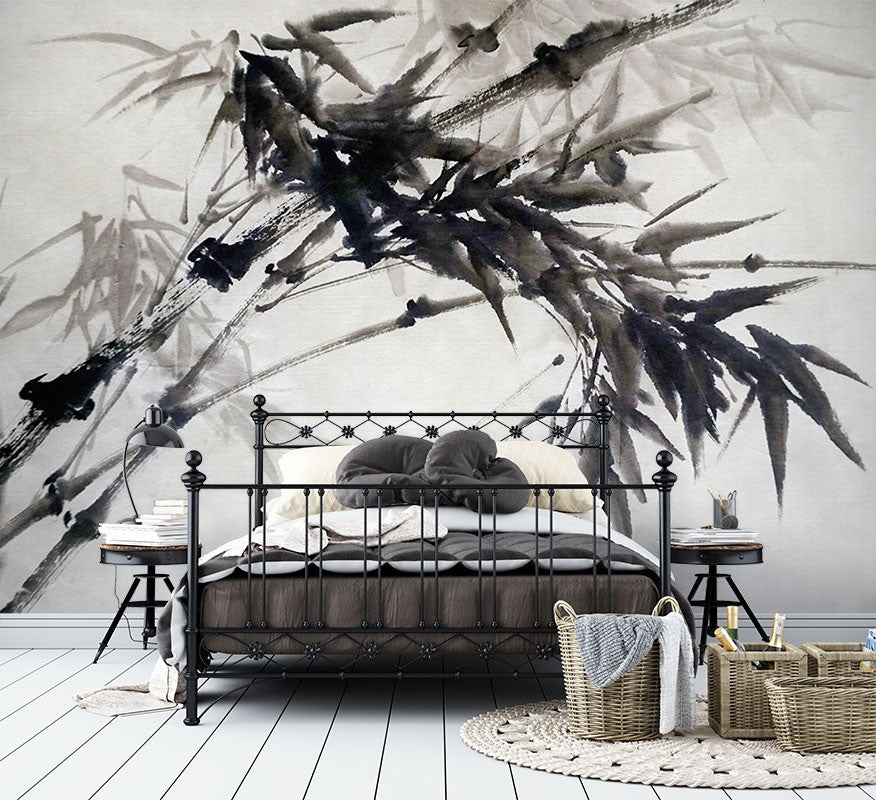 Bamboo Leaves Art Traditional Black Wallpaper Mural,Self-Adhesive Peel And Stick 3D Wall Mural,Bedroom Removable Wall Decor