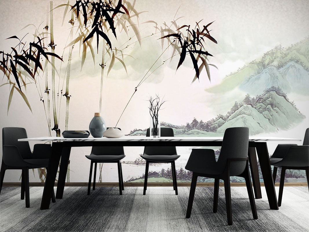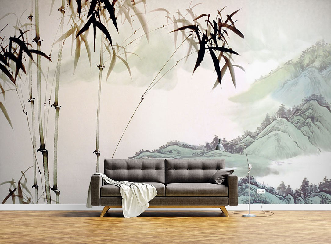 Bamboo Mountain Art Chinoiserie Green Wallpaper Mural,Self-Adhesive Peel And Stick 3D Wall Art,Removable Australian Company Wall Decor