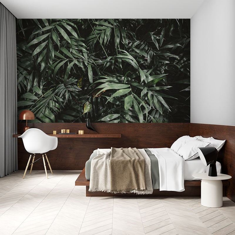 Bamboo Shrub Floral Leaves Black Wallpaper Mural,Self-Adhesive Peel And Stick 3D Wall Paper,Bedroom Removable Wall Decor