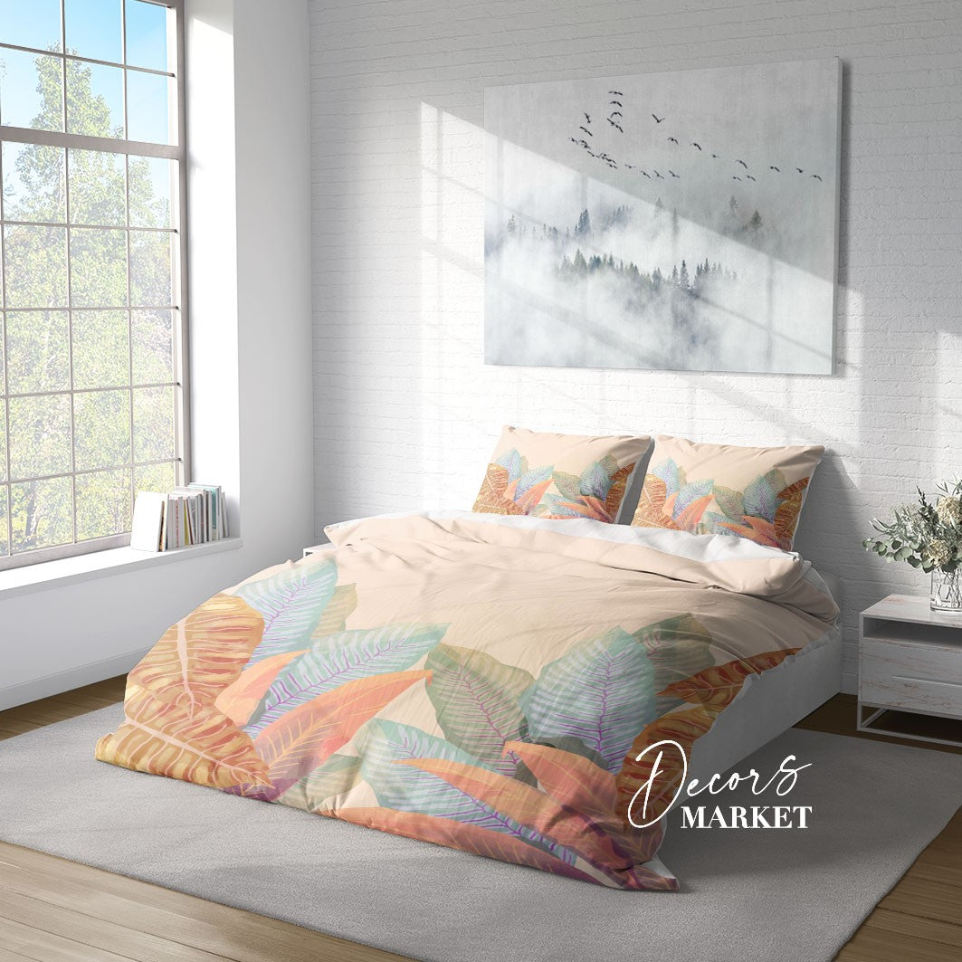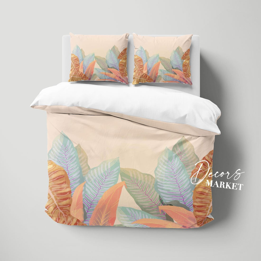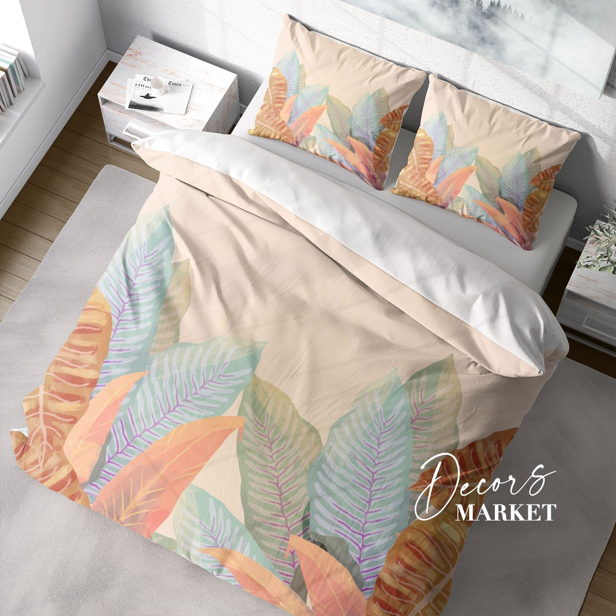 Banana Leaves Duvet Cover Set w Pillowcases, Pink Pastel Floral Leaves 3D Quilt Cover, 3pc Single Double Queen King Size Doona Cover