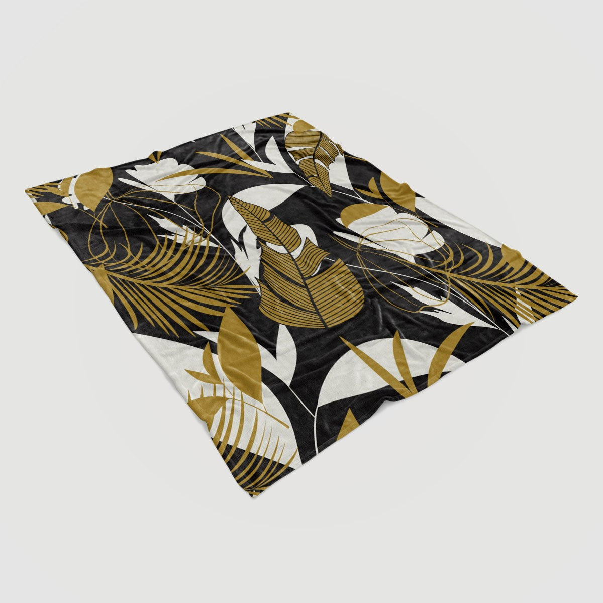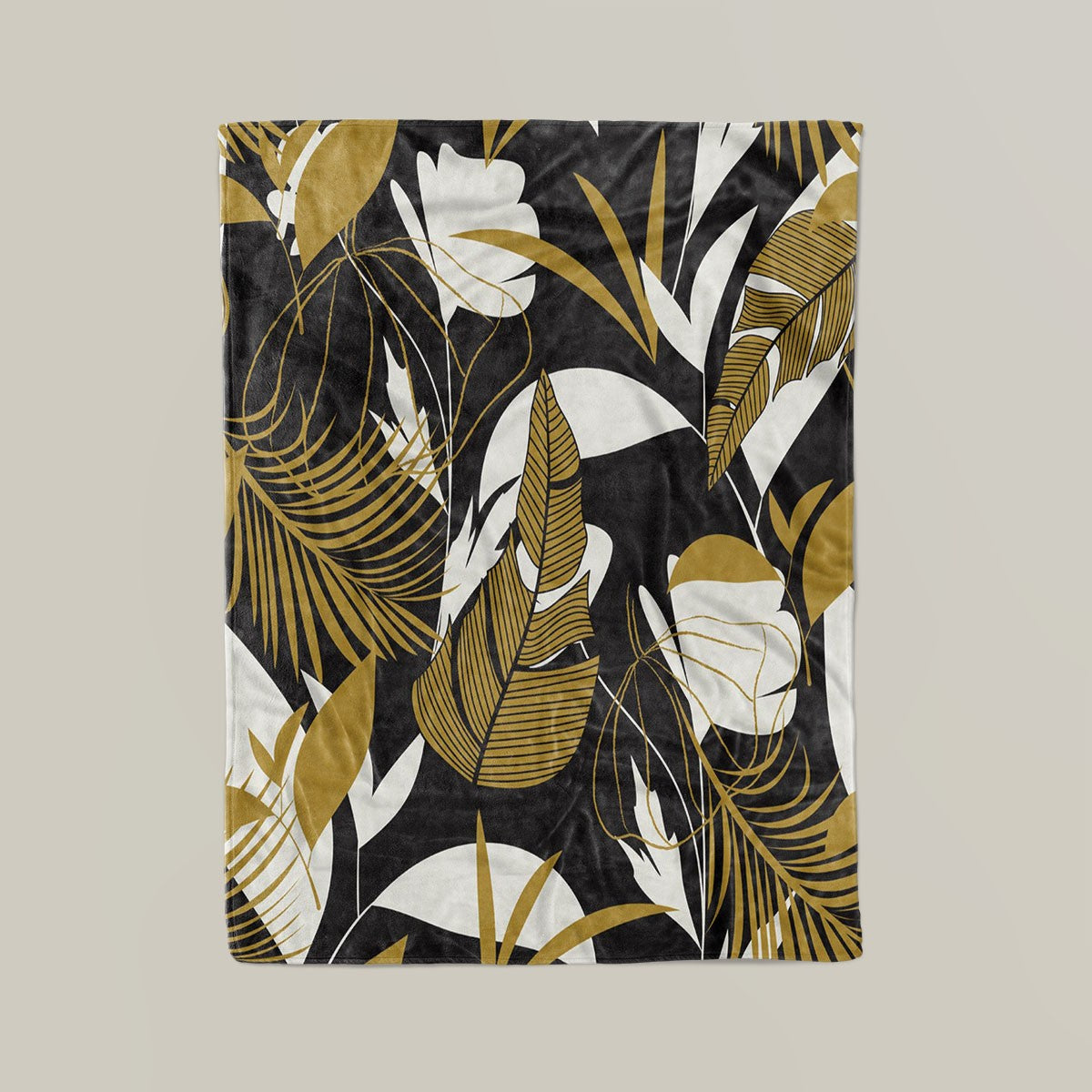 Banana Leaves Floral Leaves Dark Personalized Throw Blanket Custom Fleece Sherpa Throw