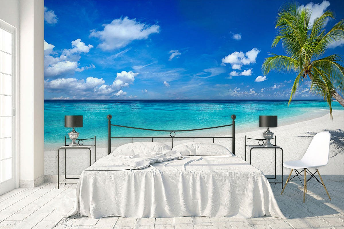 Beach Bay Blue Wallpaper Mural,Self-Adhesive Peel And Stick 3D Wall Paper,Designer Bedroom Wall Decor