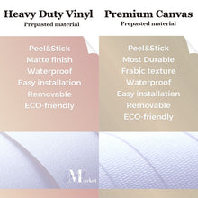 Premium Canvas (Recommended): highly durable, features a peel-and-stick adhesive for effortless installation, it is waterproof and luxuriously textured, replicates the look and feel of an oil painting canvas.