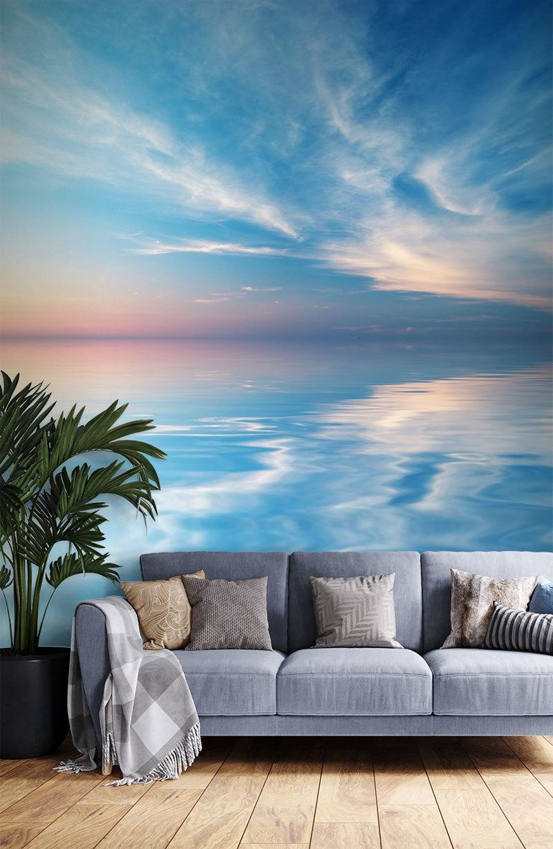 Beach Clouds Nature Sky Blue Wallpaper Mural,Self-Adhesive Peel And Stick 3D Wall Art,Removable Designer Wall Decor