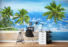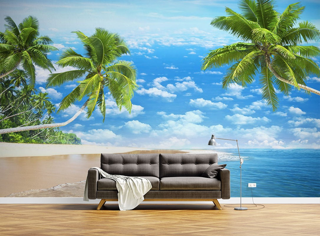 Beach Clouds Palm Tree Blue Wallpaper Mural,Self-Adhesive Peel And Stick 3D Wall Art,Designer Australian Company Wall Decor