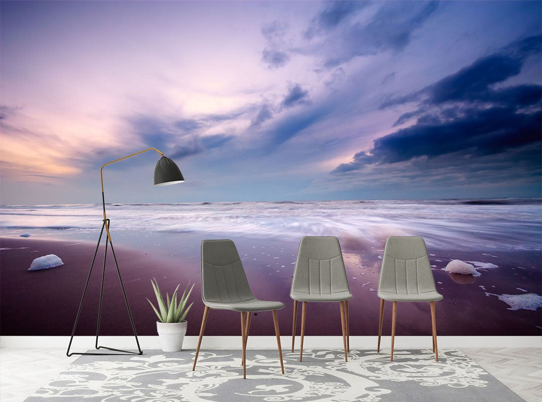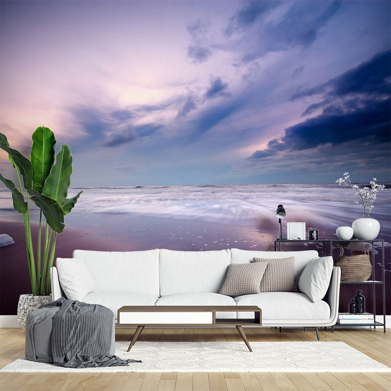 Beach Horizon Sunrise Sunset Purple Wallpaper Mural,Self-Adhesive Peel And Stick 3D Wall Art,Removable Bedroom Wall Decor