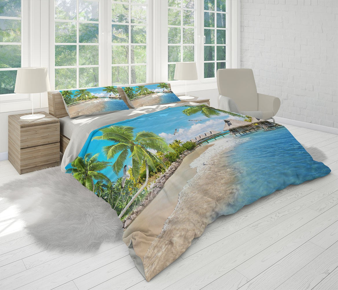 Beach Resort Palm Tree Blue 3D Duvet Cover Set W Pillow Cover, Single Double Queen King Size, Printed Cotton Quilt Doona Cover 3 Pcs
