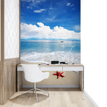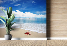Beach Starfish Blue Wallpaper Mural,Self-Adhesive Peel And Stick 3D Wall Paper,Removable Bedroom Wall Decor