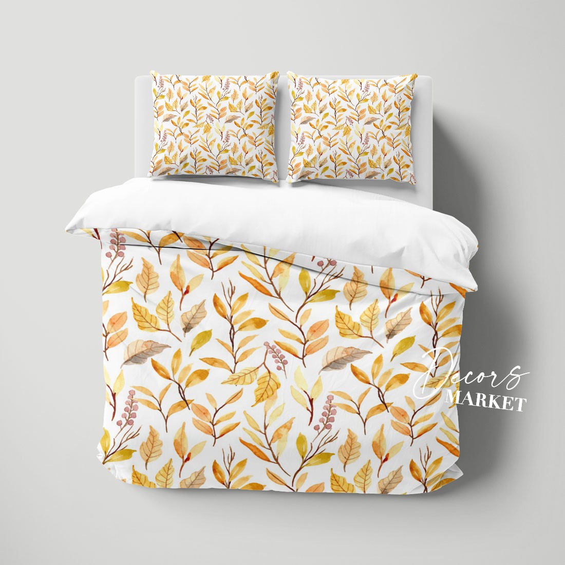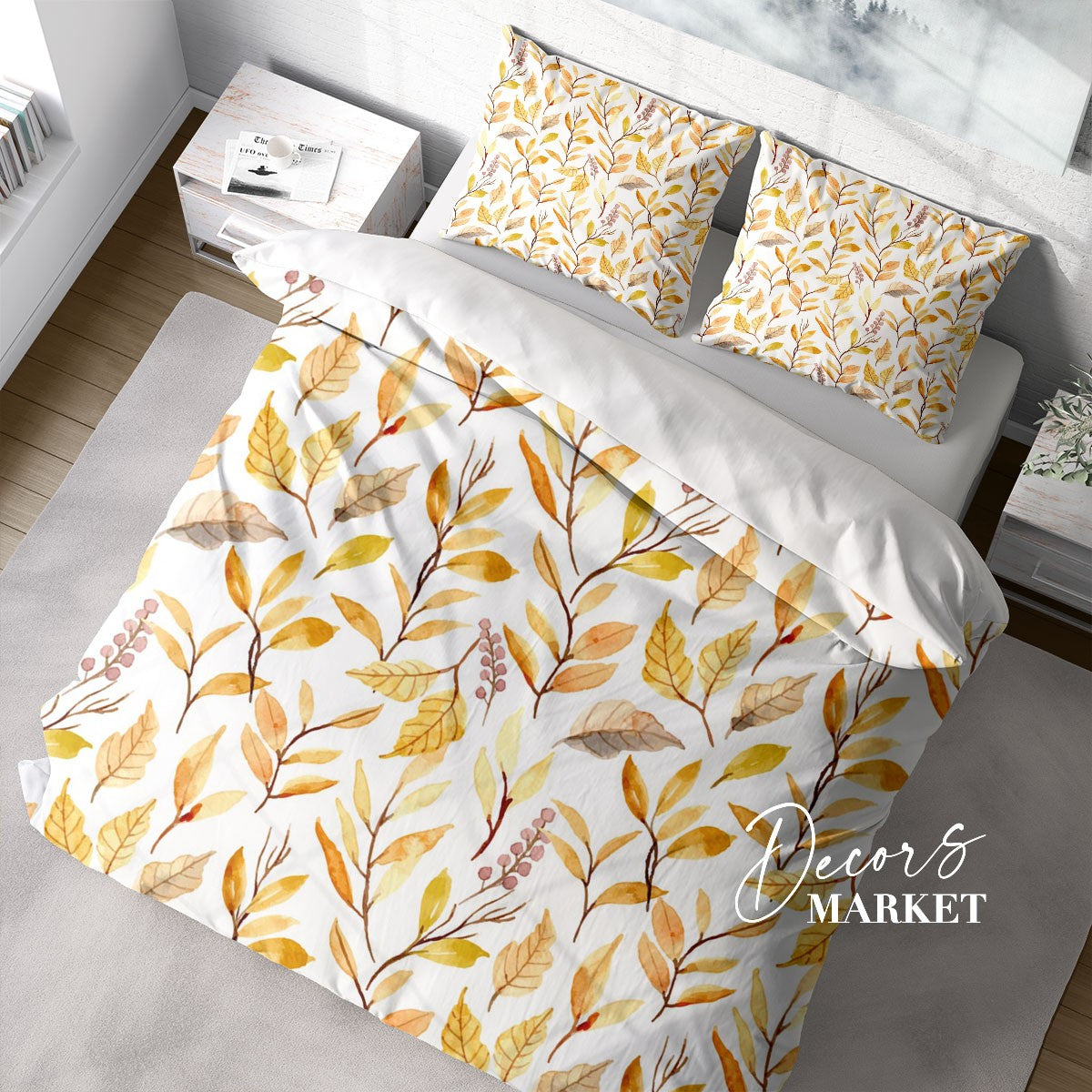 Berry Branches Duvet Cover Set w Pillowcases, Orange Floral Leaves 3D Quilt Cover, 3pc Single Double Queen King Size Doona Cover