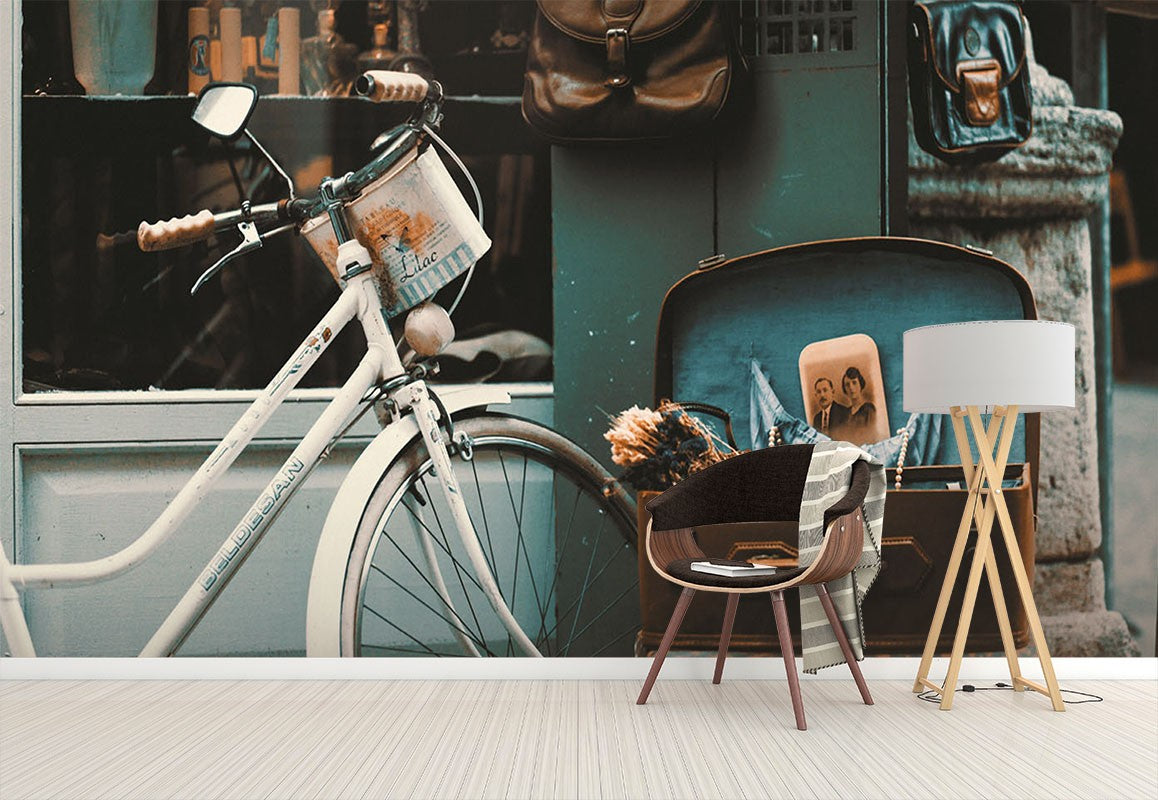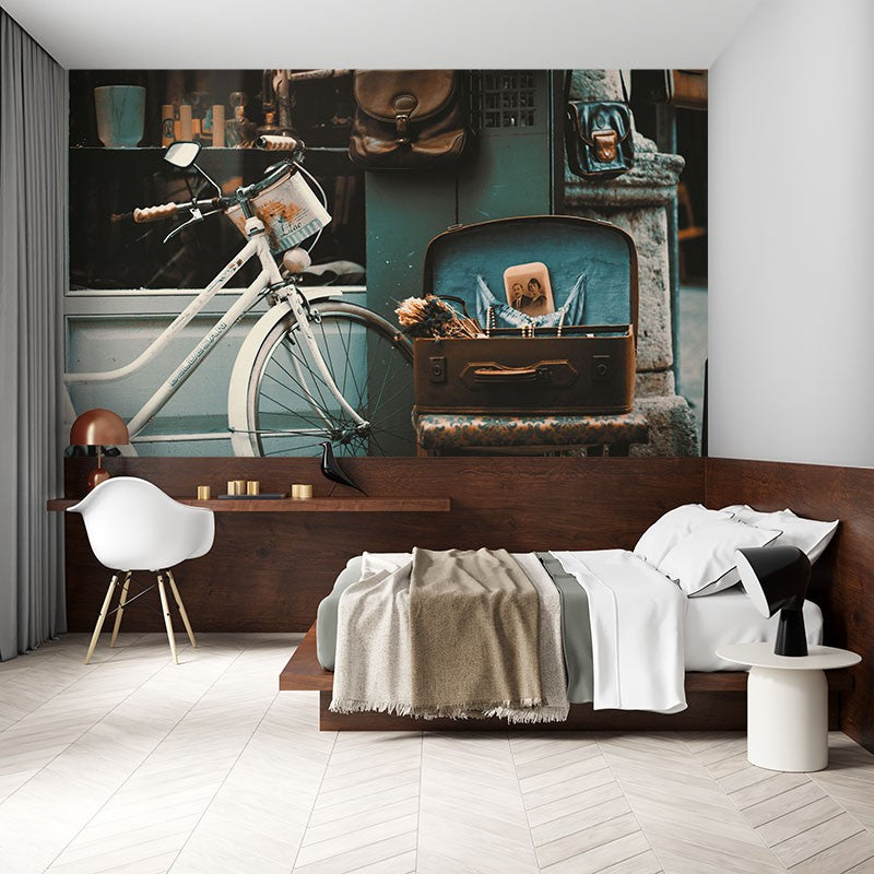 Bicycle Luggage City Streets Gray Wallpaper Mural,Self-Adhesive Peel And Stick 3D Wall Art,Bedroom Designer Wall Decor
