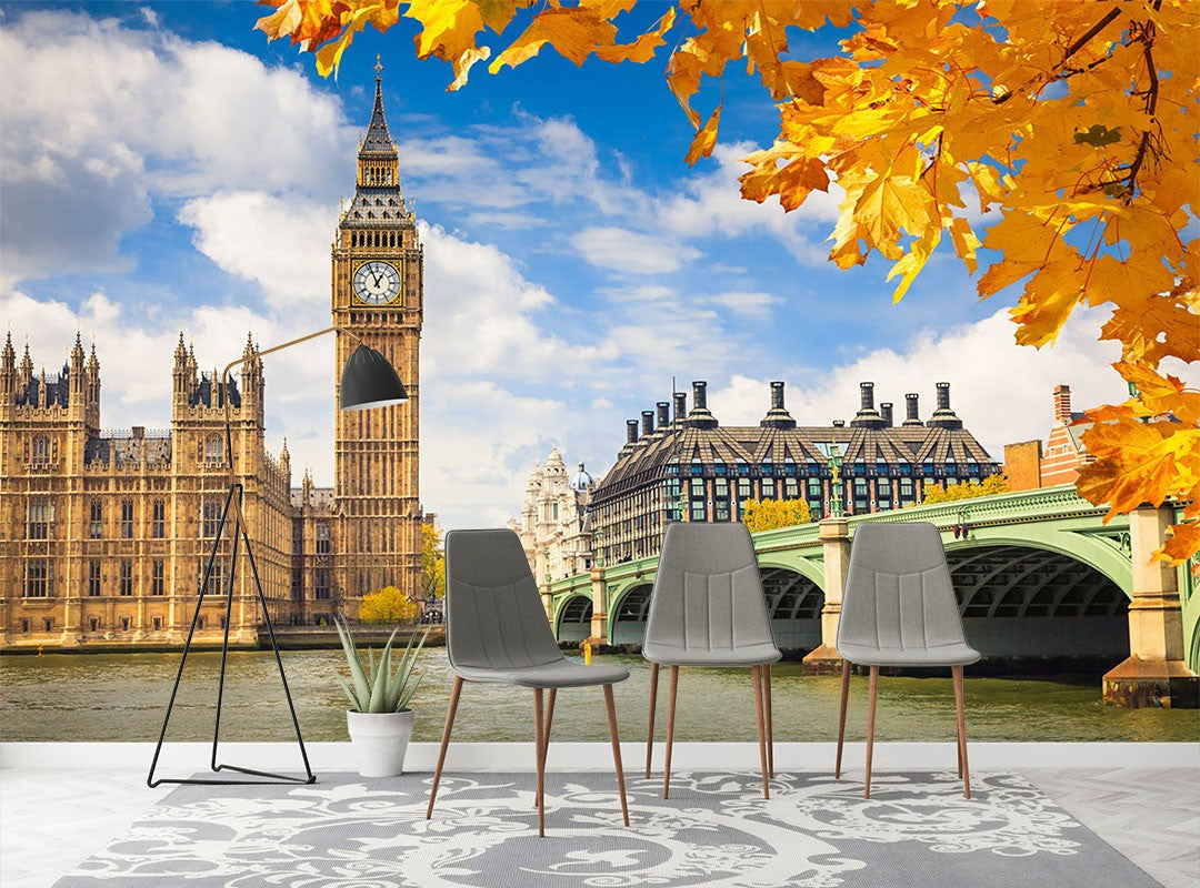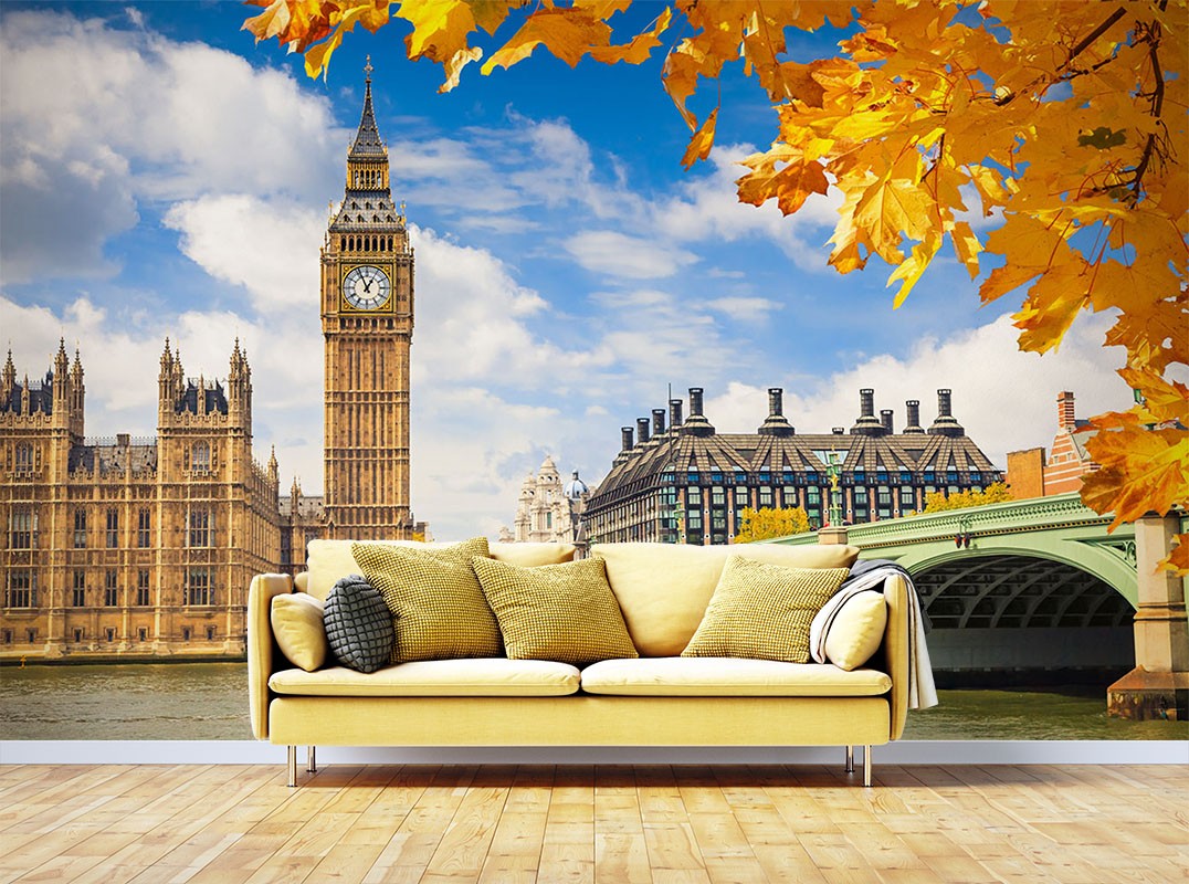 Big Ben City Landmarks Orange Wallpaper Mural,Self-Adhesive Peel And Stick 3D Wall Mural,Bedroom Australian Company Wall Decor