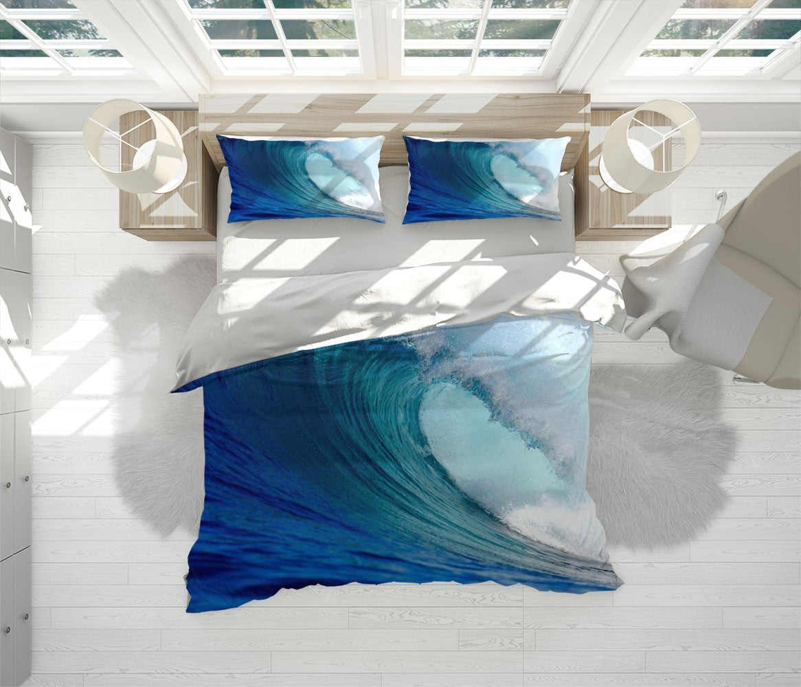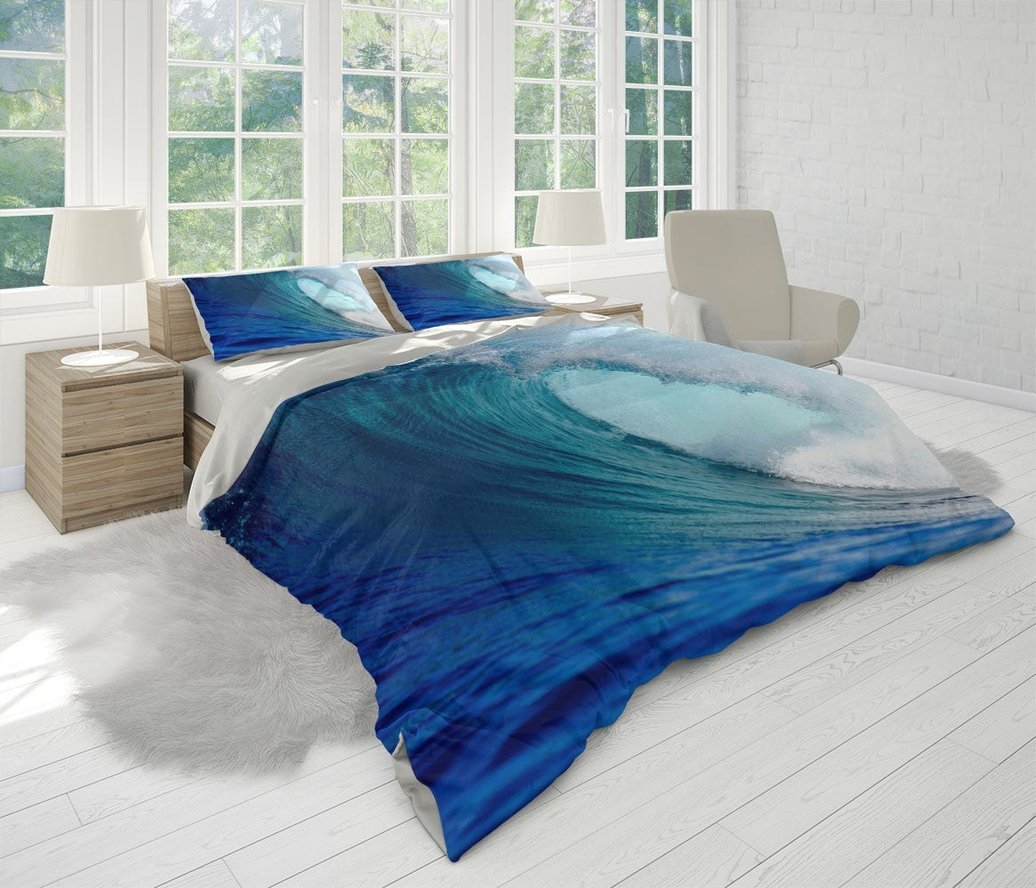 Big Wave Duvet Cover Set W Pillow Cover, Blue Beach Wave 3D Quilt Cover, Single Double Queen King Size Doona Cover