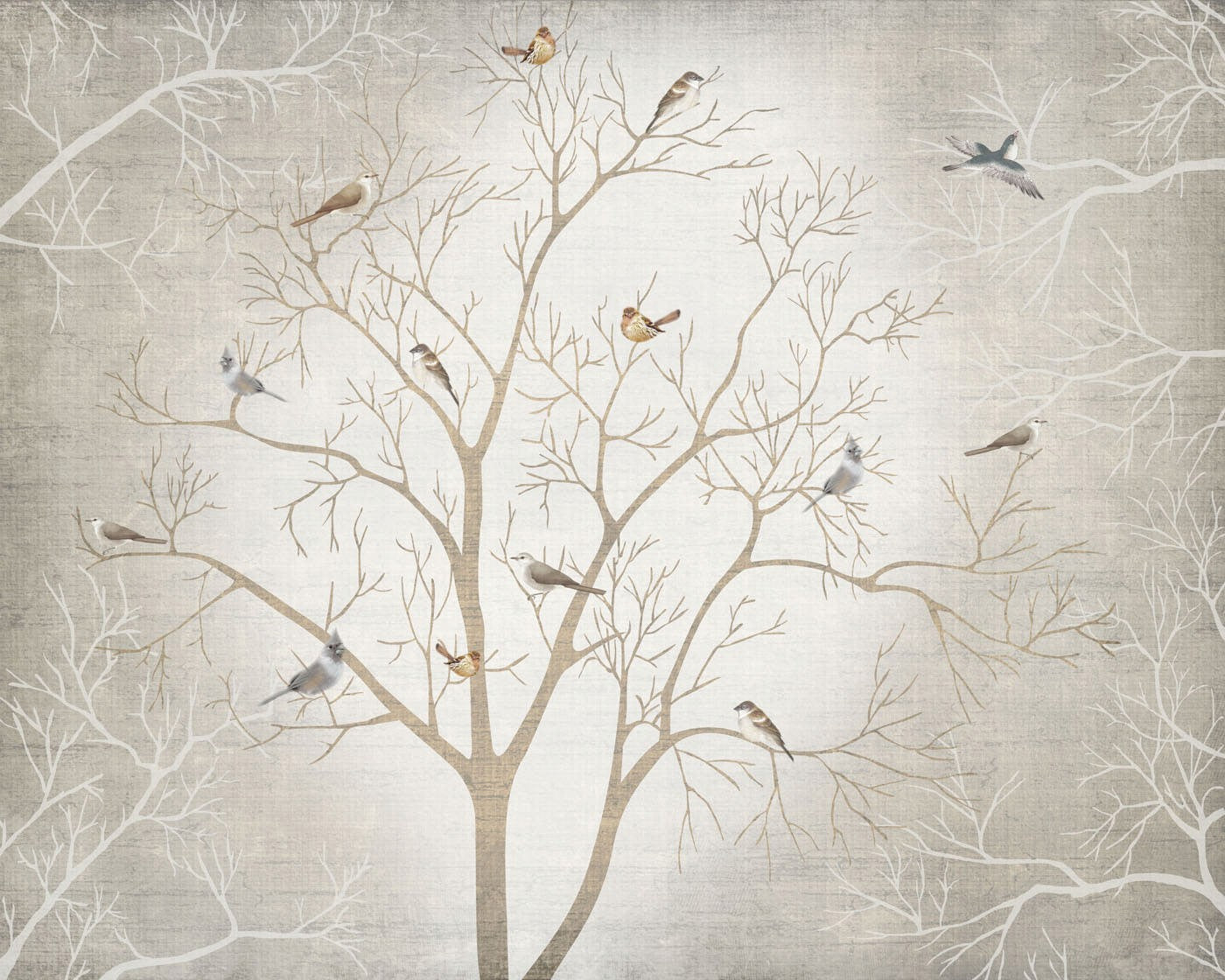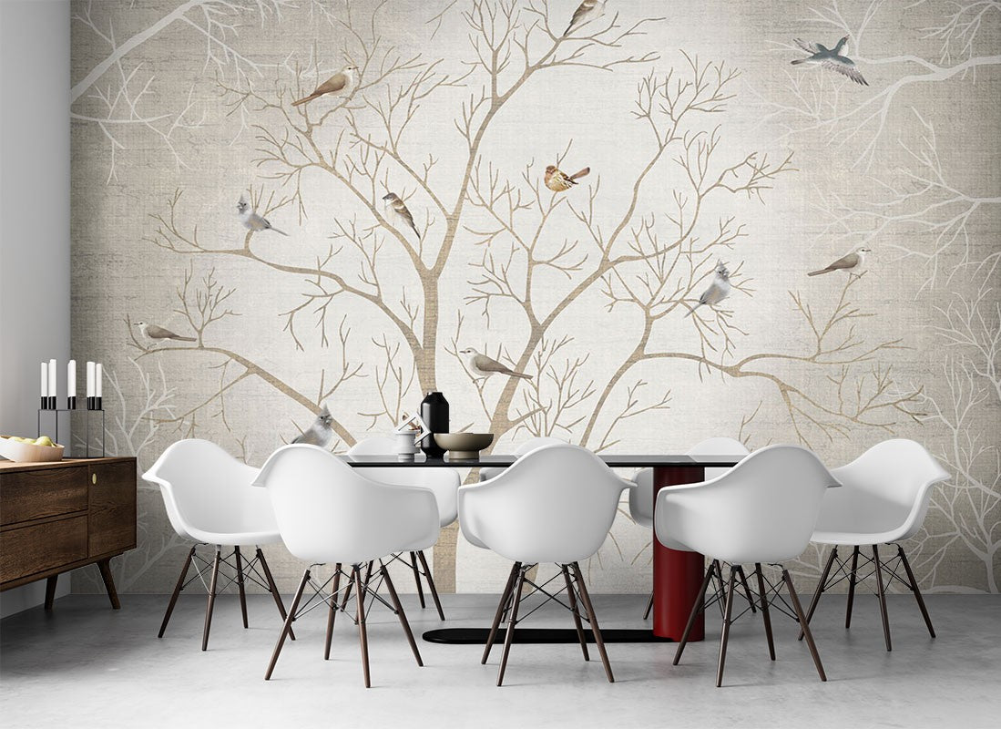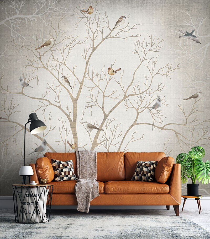 Bird Art Old Fashioned Brown Wallpaper Mural,Self-Adhesive Peel And Stick 3D Wall Mural,Removable Bedroom Wall Decor