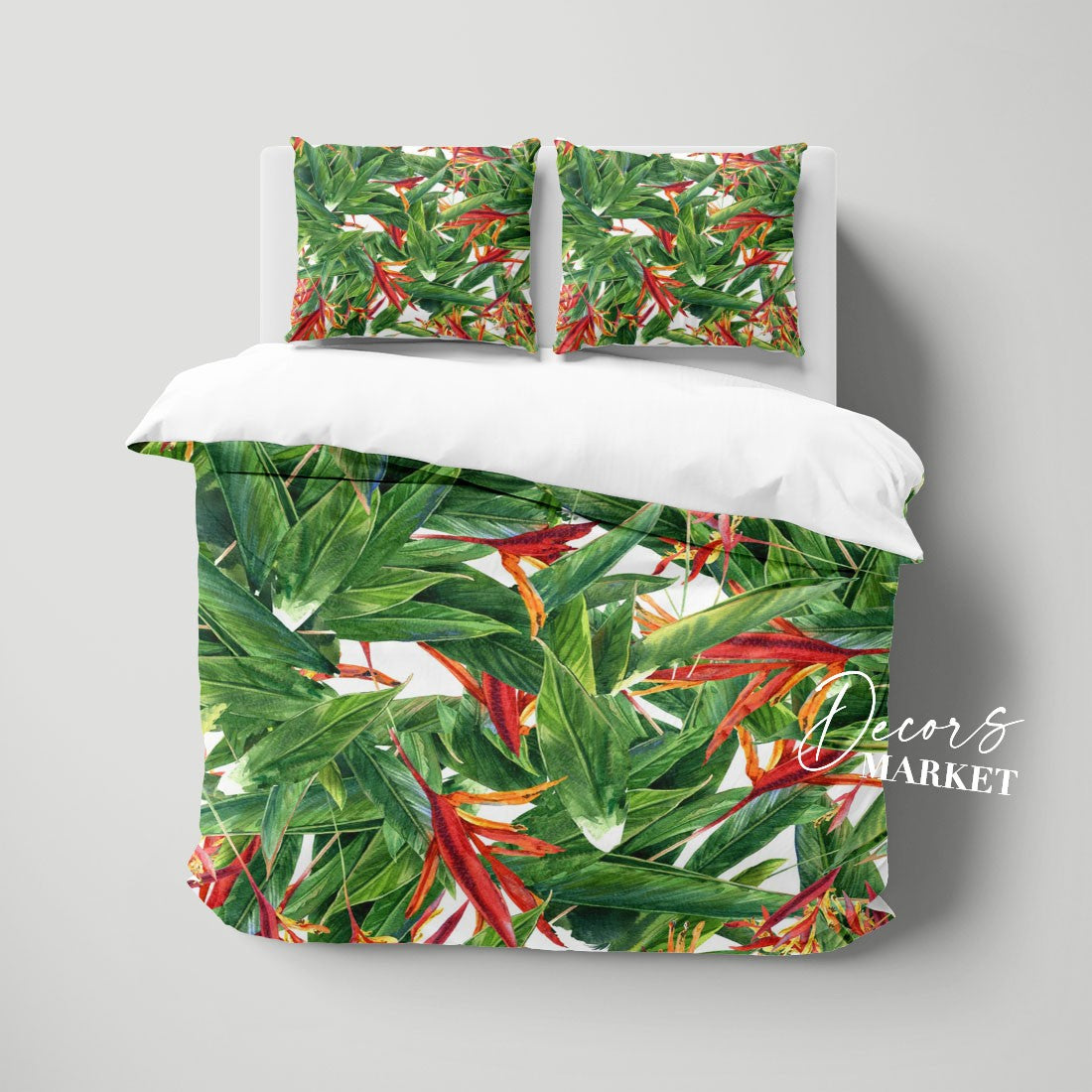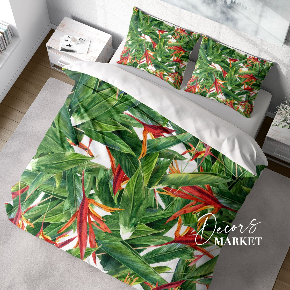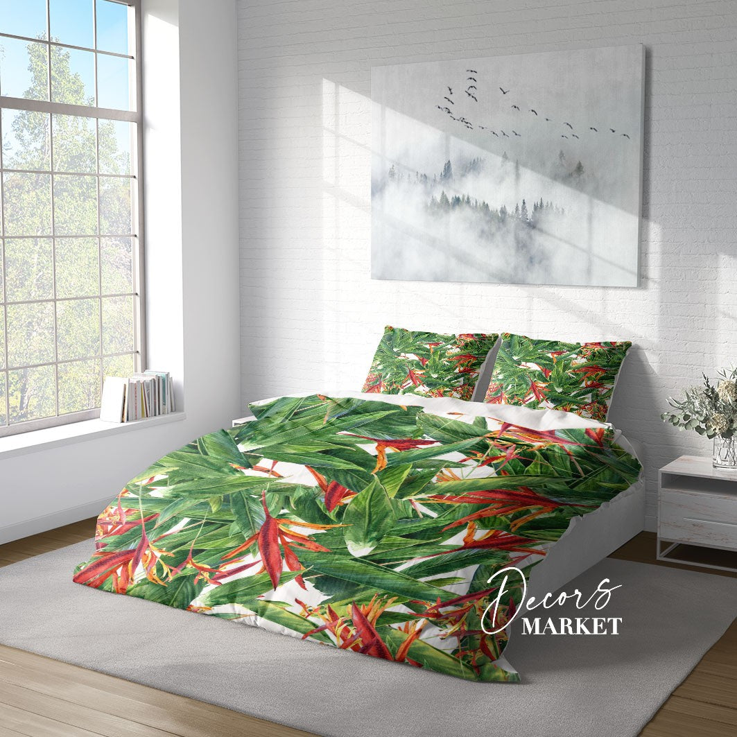 Bird of Paradise Duvet Cover Set w Pillowcases, Green Floral Flowers 3D Quilt Cover, 3pc Single Double Queen King Size Doona Cover