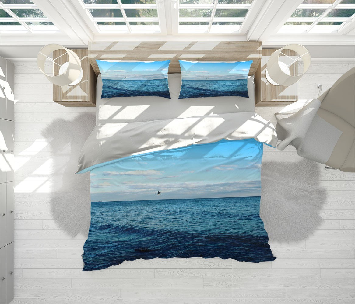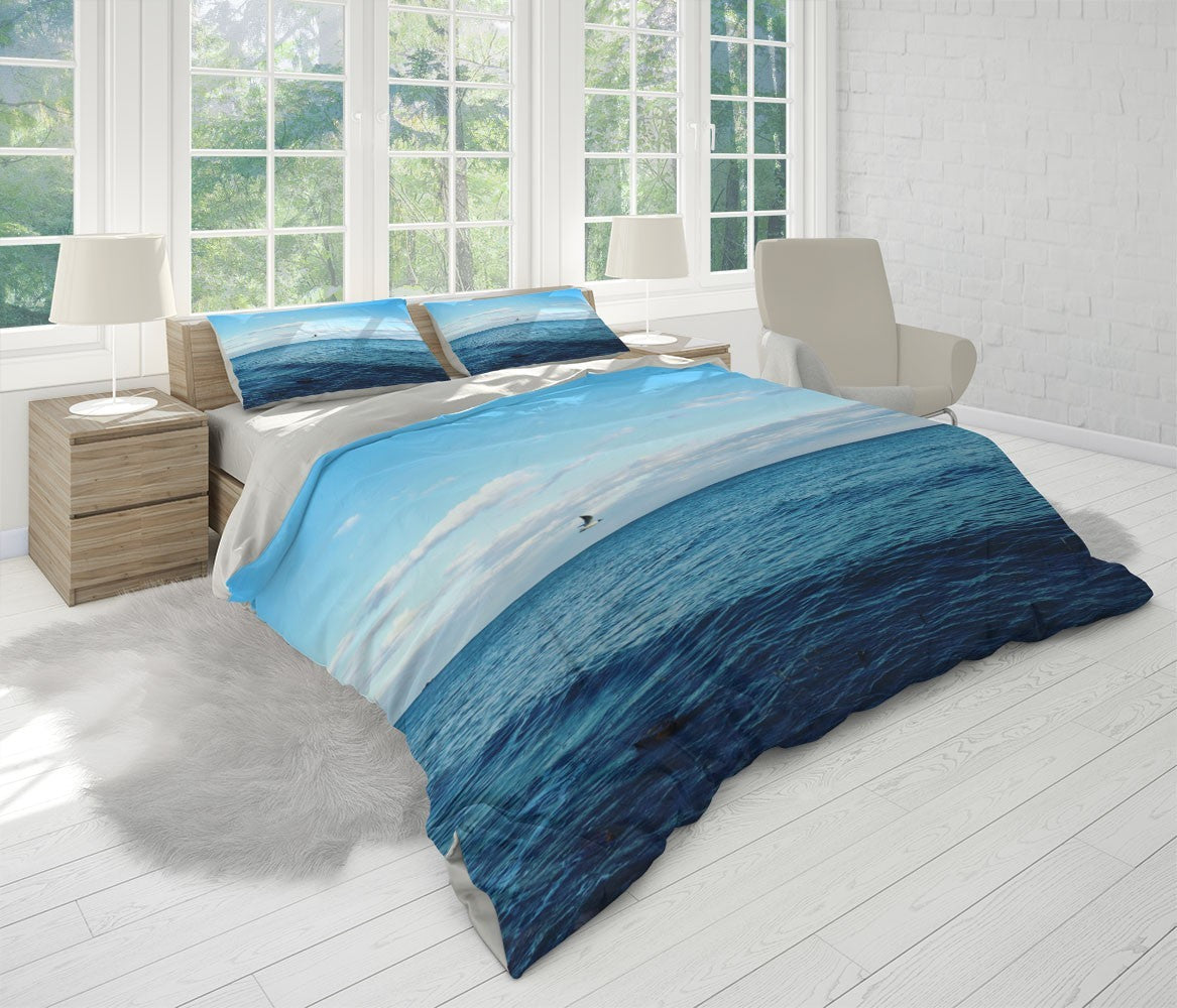 Bird Waves Duvet Cover Set W Pillow Cover, Blue Beach Wave 3D Quilt Cover, Single Double Queen King Size Doona Cover