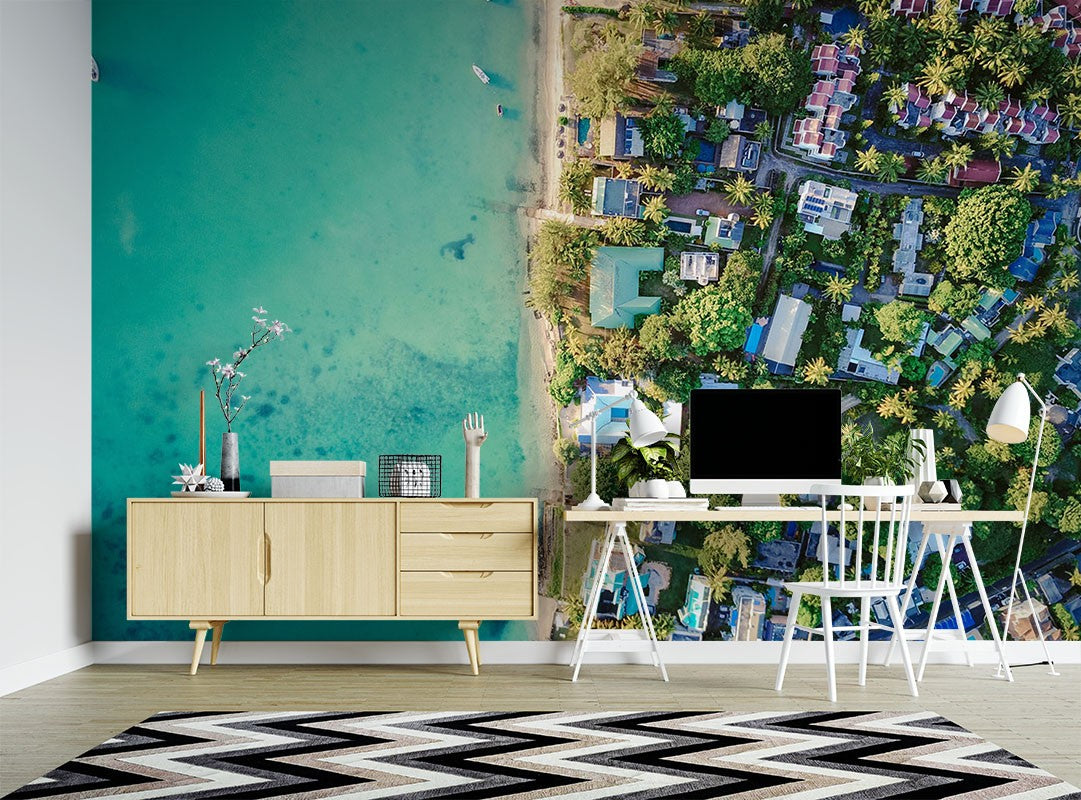Bird'S Eye View Beach Blue Wallpaper Mural,Self-Adhesive Peel And Stick 3D Wall Art,Designer Australian Company Wall Decor
