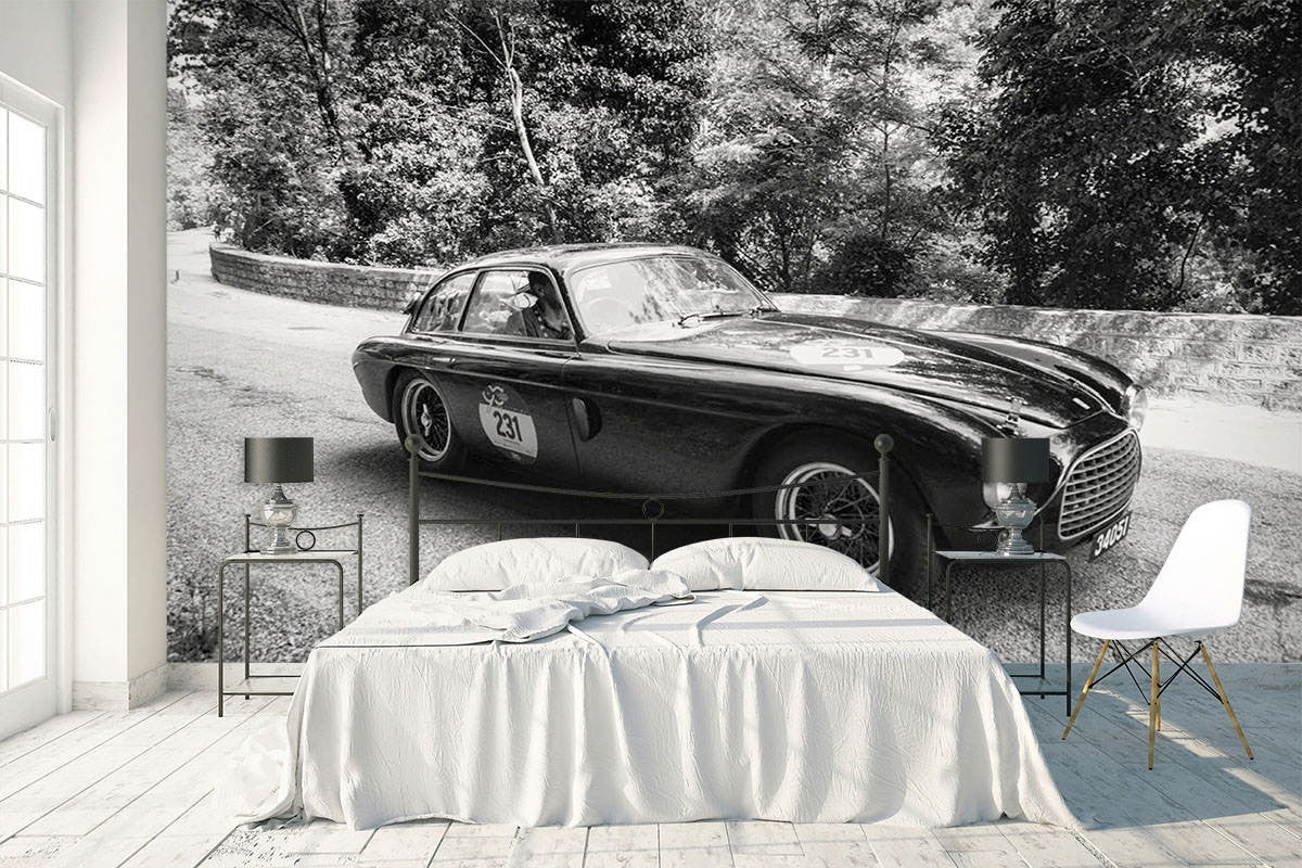 Black Vintage Car Vintage Car Black&White Wallpaper Mural,Self-Adhesive Peel And Stick 3D Wall Decor,Bedroom Designer Wall Decor