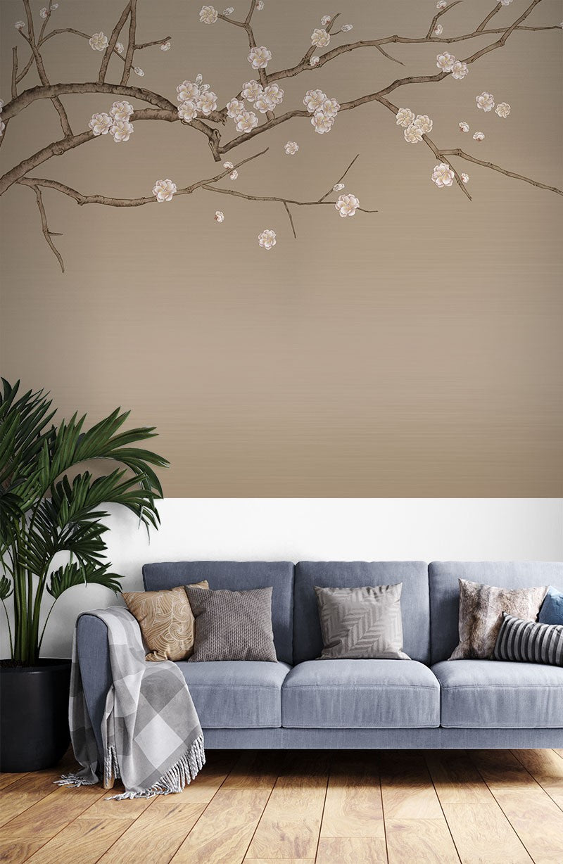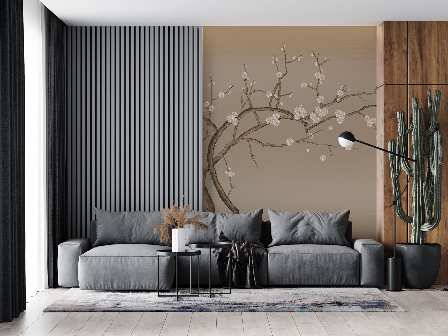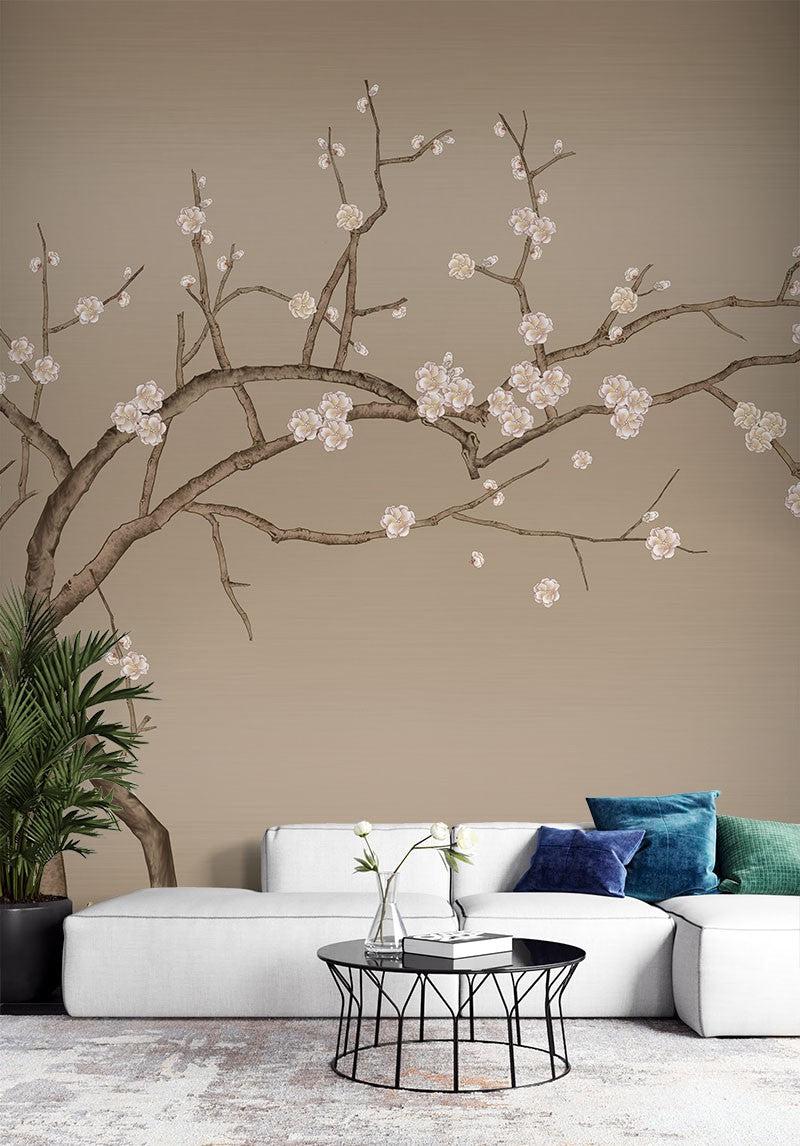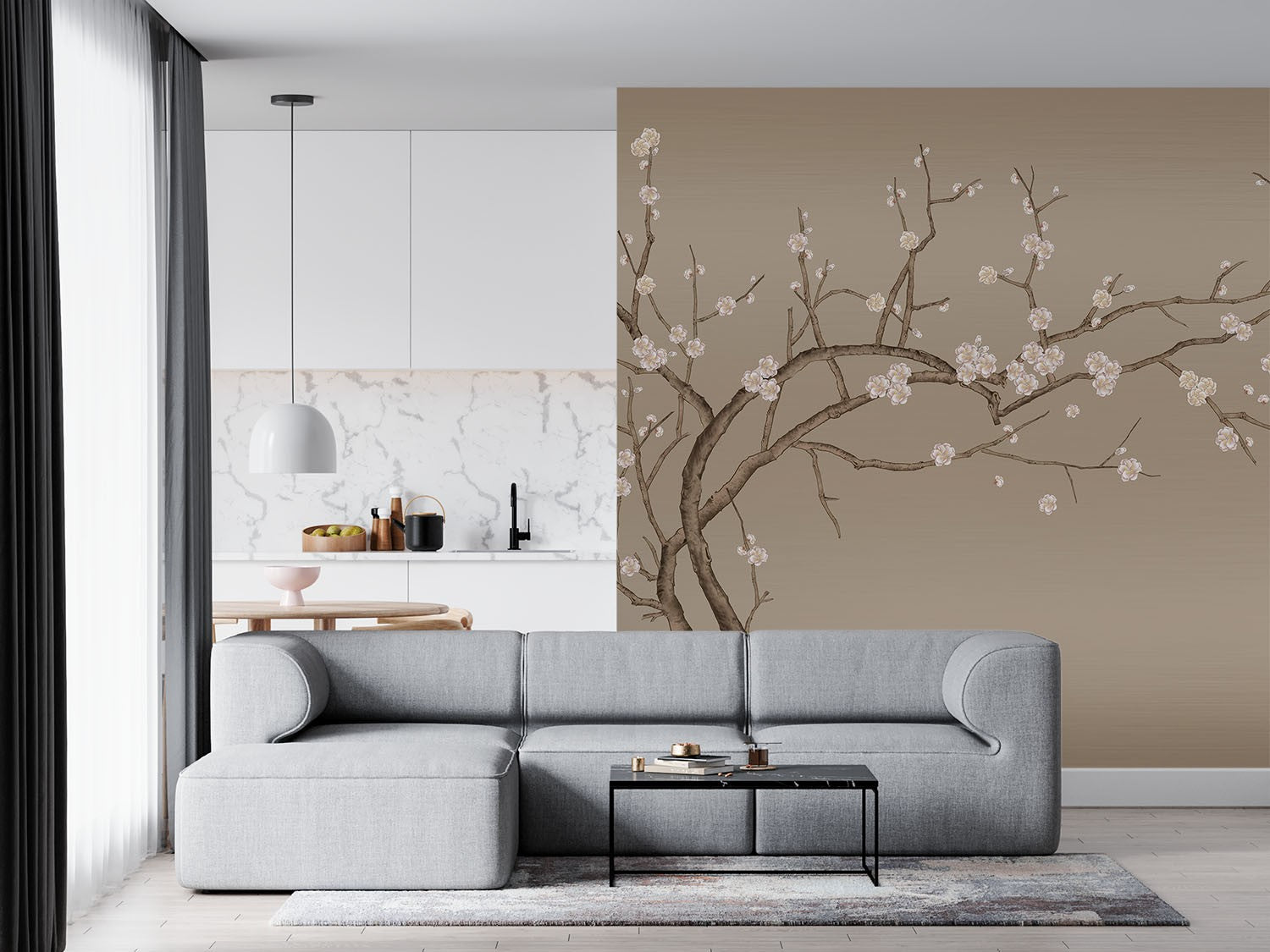 Blooming Tree Art Chinoiserie Brown Wallpaper Mural