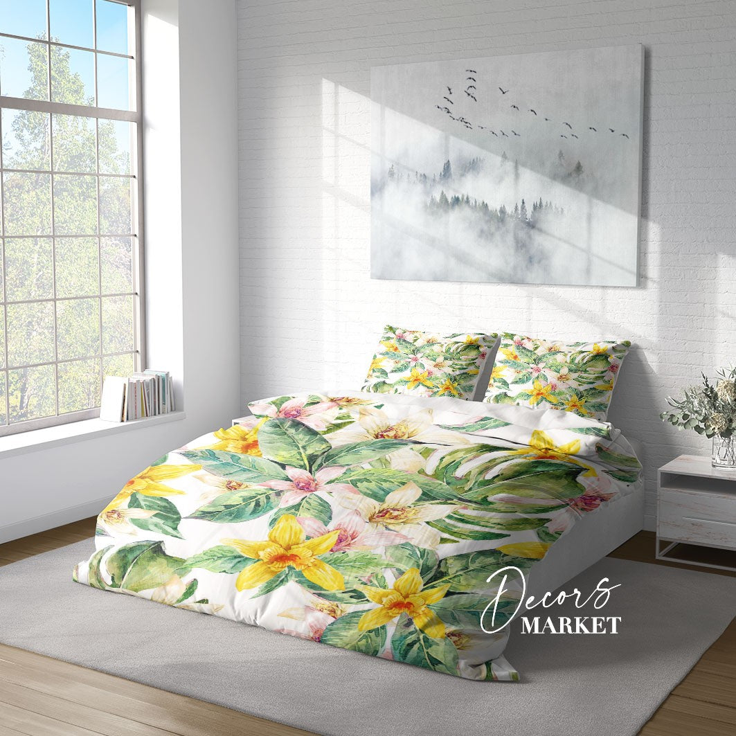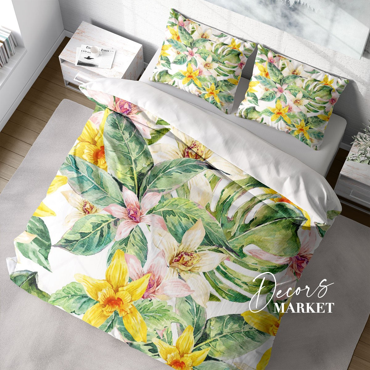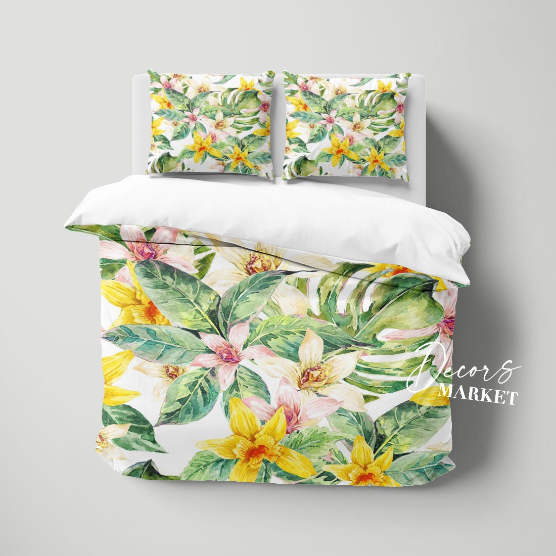 Blossom Botanical Leaf Duvet Cover Set w Pillowcases, Green Floral Patterns 3D Quilt Cover, 3pc Single Double Queen King Size Doona Cover