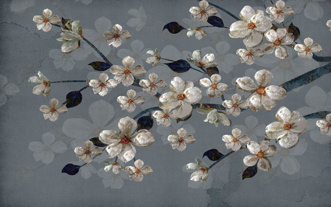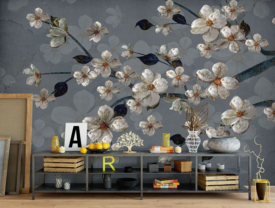 Blossom Floral Dutch Flowers Blue Wallpaper Mural,Self-Adhesive Peel And Stick 3D Wall Decal,Bedroom Designer Wall Decor