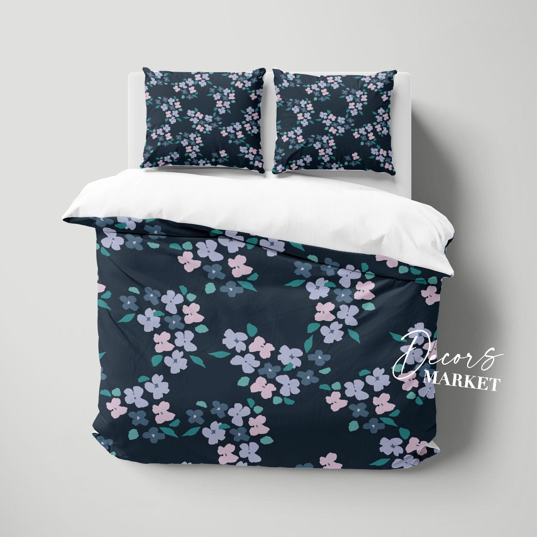 Flourishing Blossom Flower Duvet Cover Set w Pillowcases, Blue Floral Patterns 3D Quilt Cover, 3pc Single Double Queen King Size Doona Cover