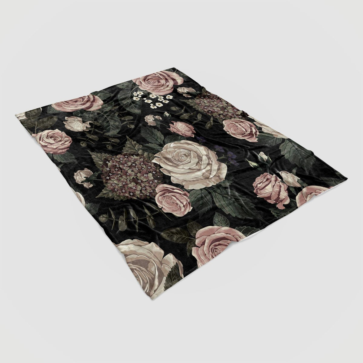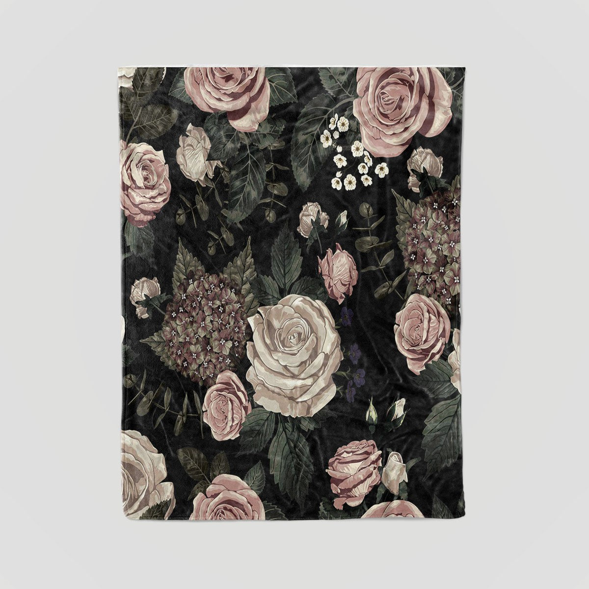 Blossom Garden Roses Floral Patterns Black Personalized Throw Blanket Custom Fleece Sherpa Throw