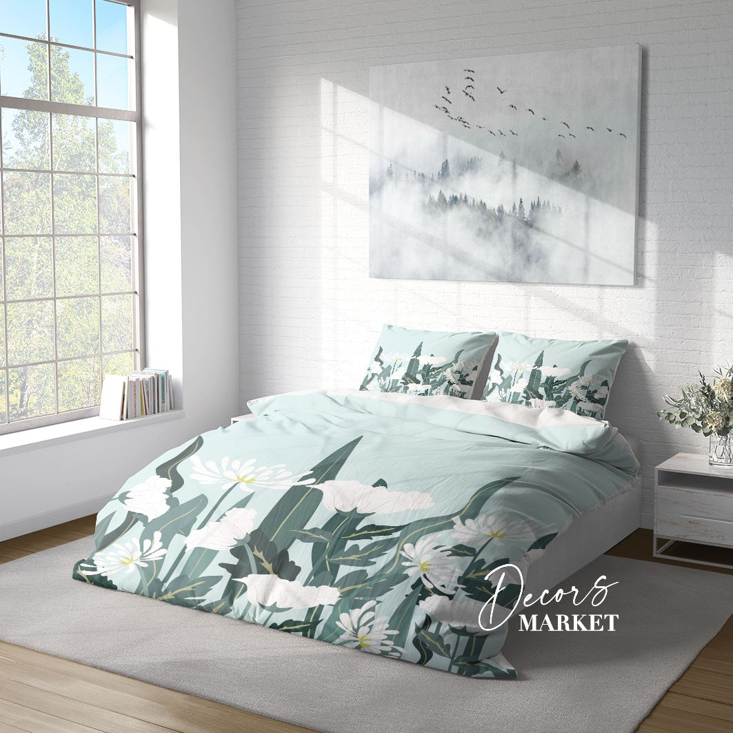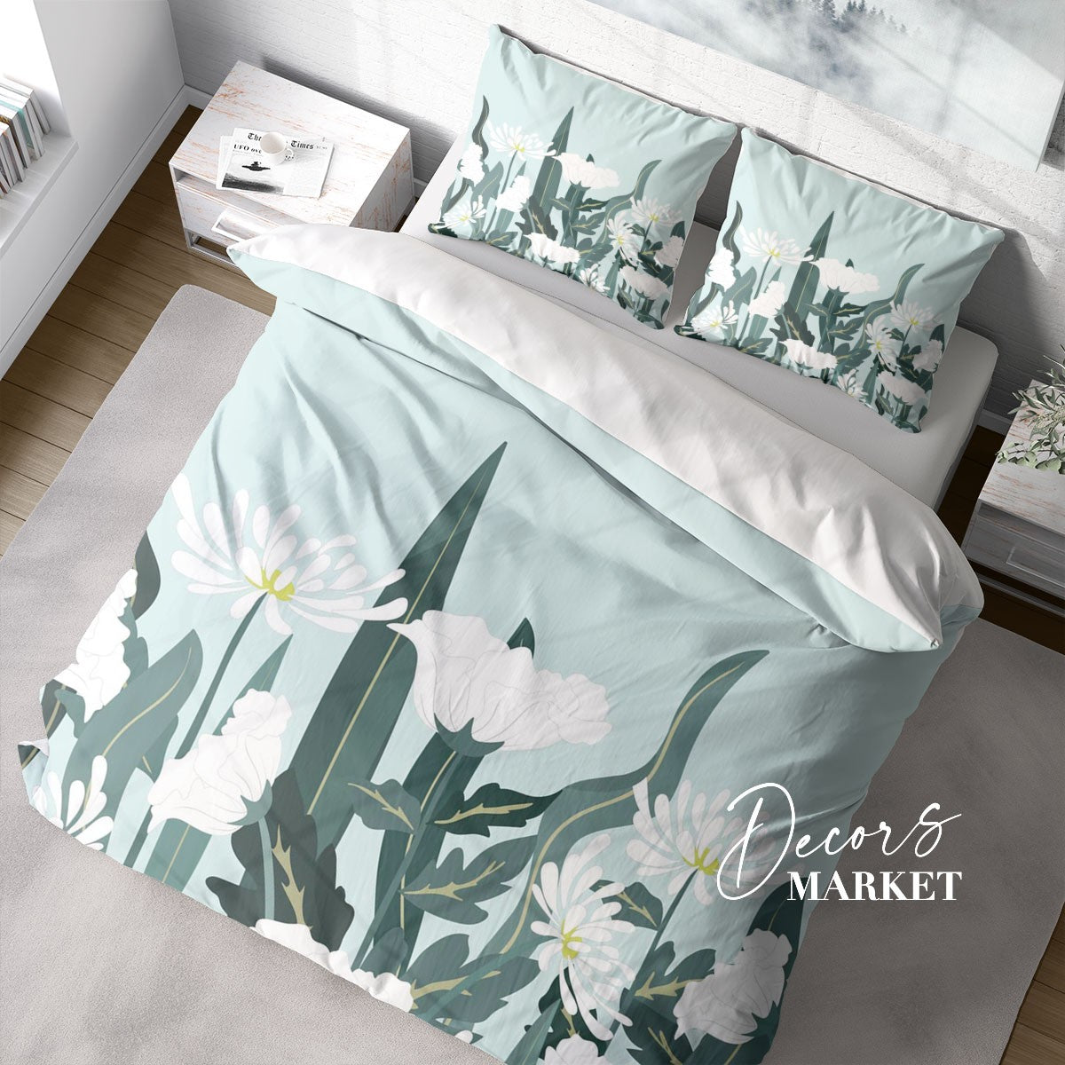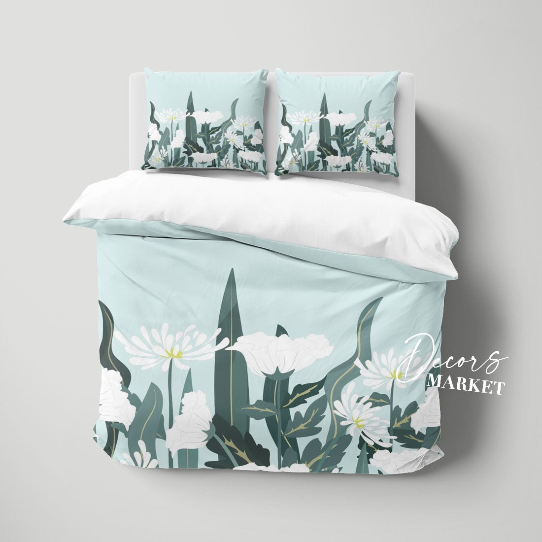 Blossom Lily Graden Duvet Cover Set w Pillowcases, Green Floral Flowers 3D Quilt Cover, 3pc Single Double Queen King Size Doona Cover