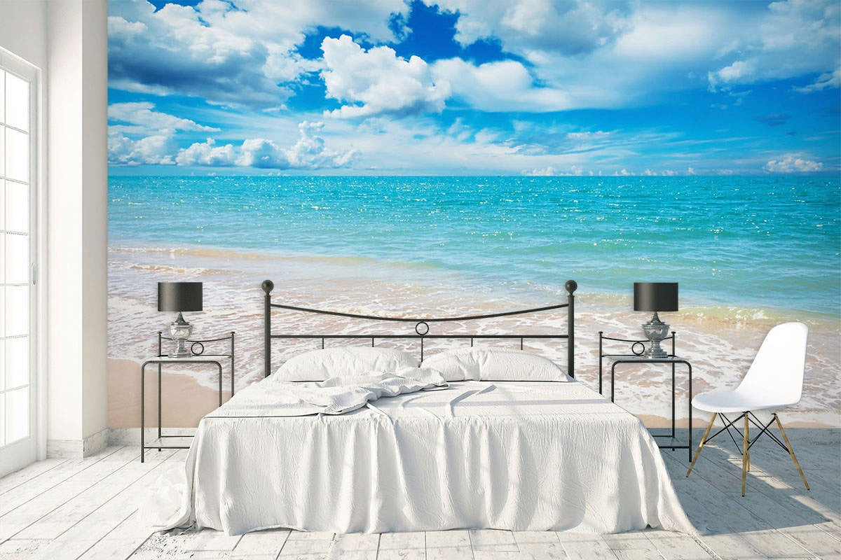 Blue Sky Beach Blue Wallpaper Mural,Self-Adhesive Peel And Stick 3D Wall Paper,Removable Designer Wall Decor