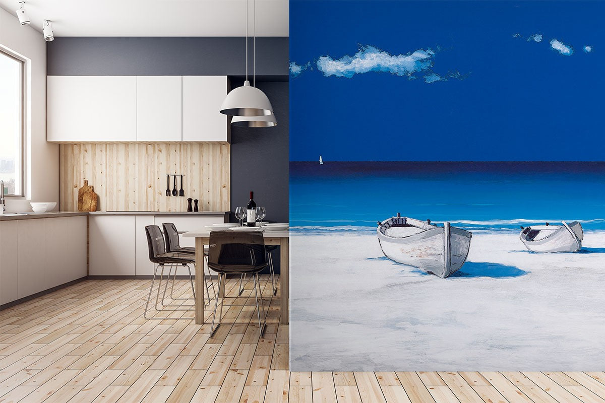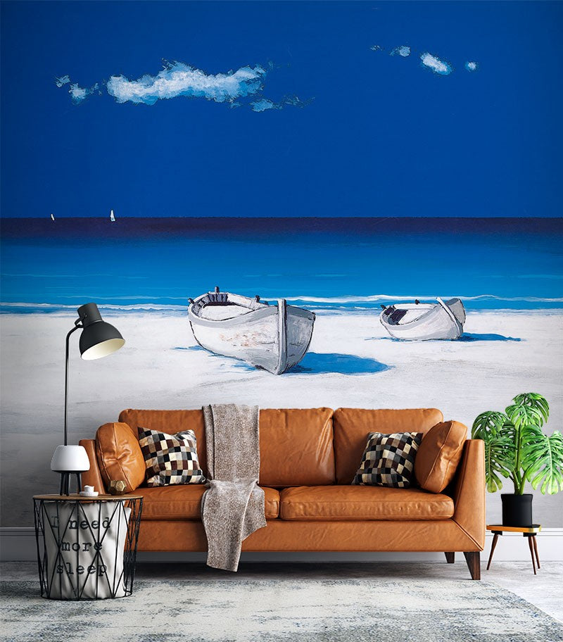 Boat Horizon Beach Blue Wallpaper Mural,Self-Adhesive Peel And Stick 3D Wall Decal,Bedroom Removable Wall Decor