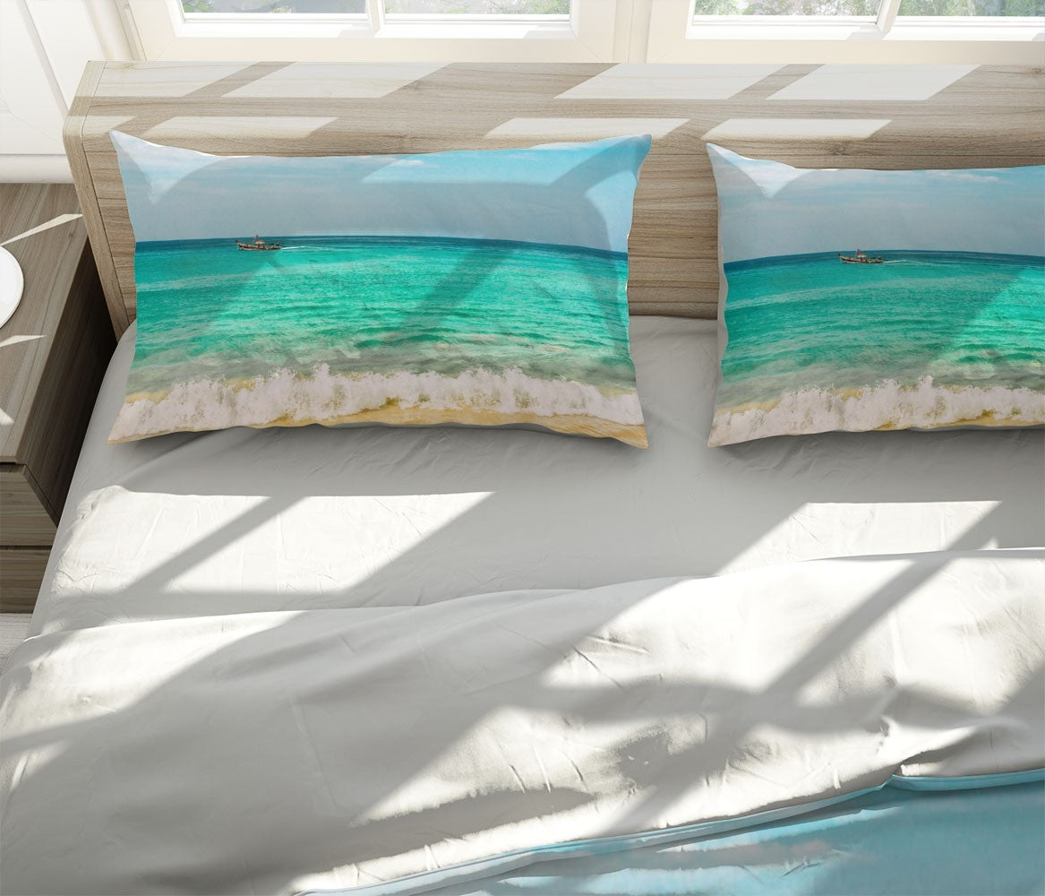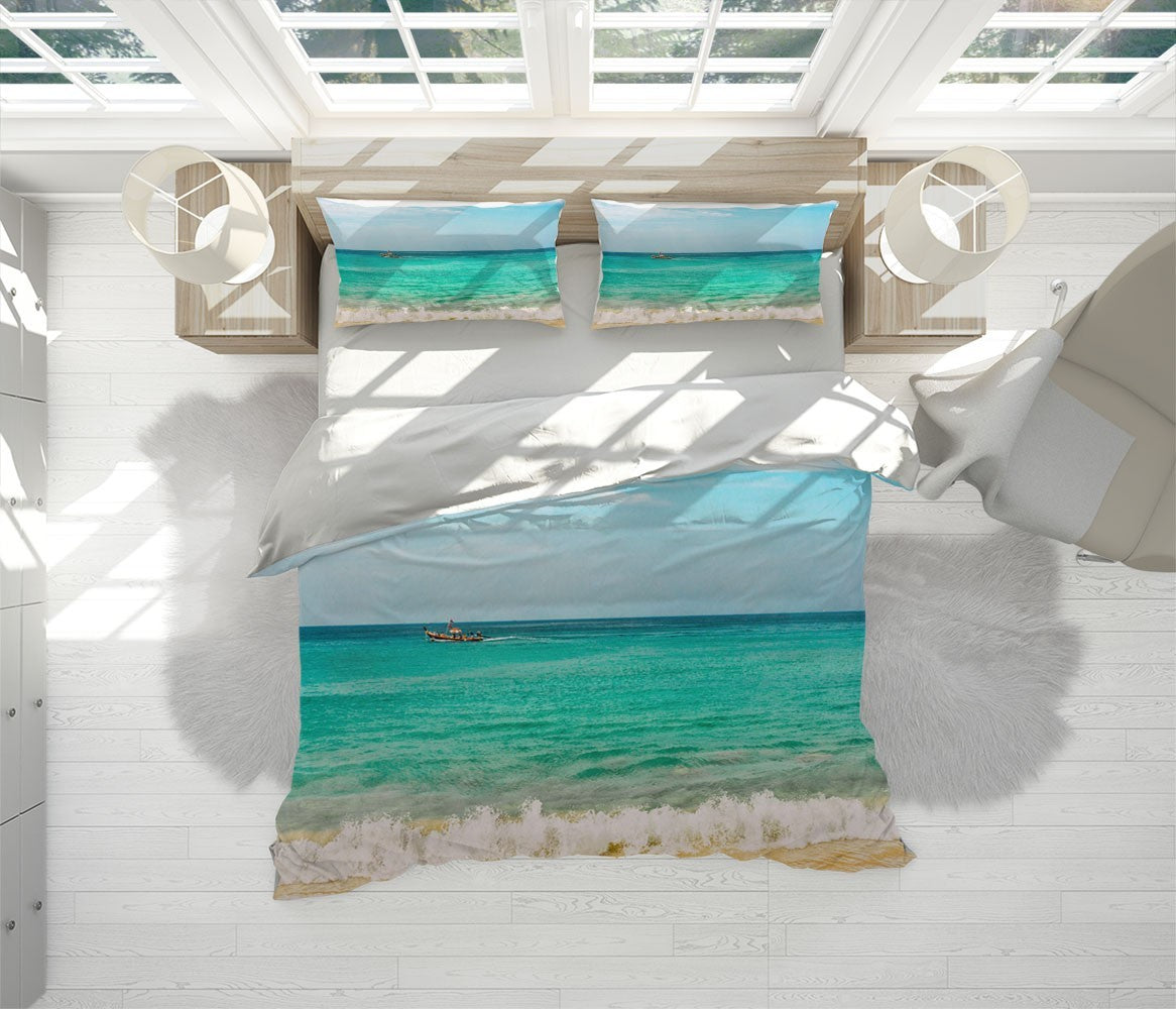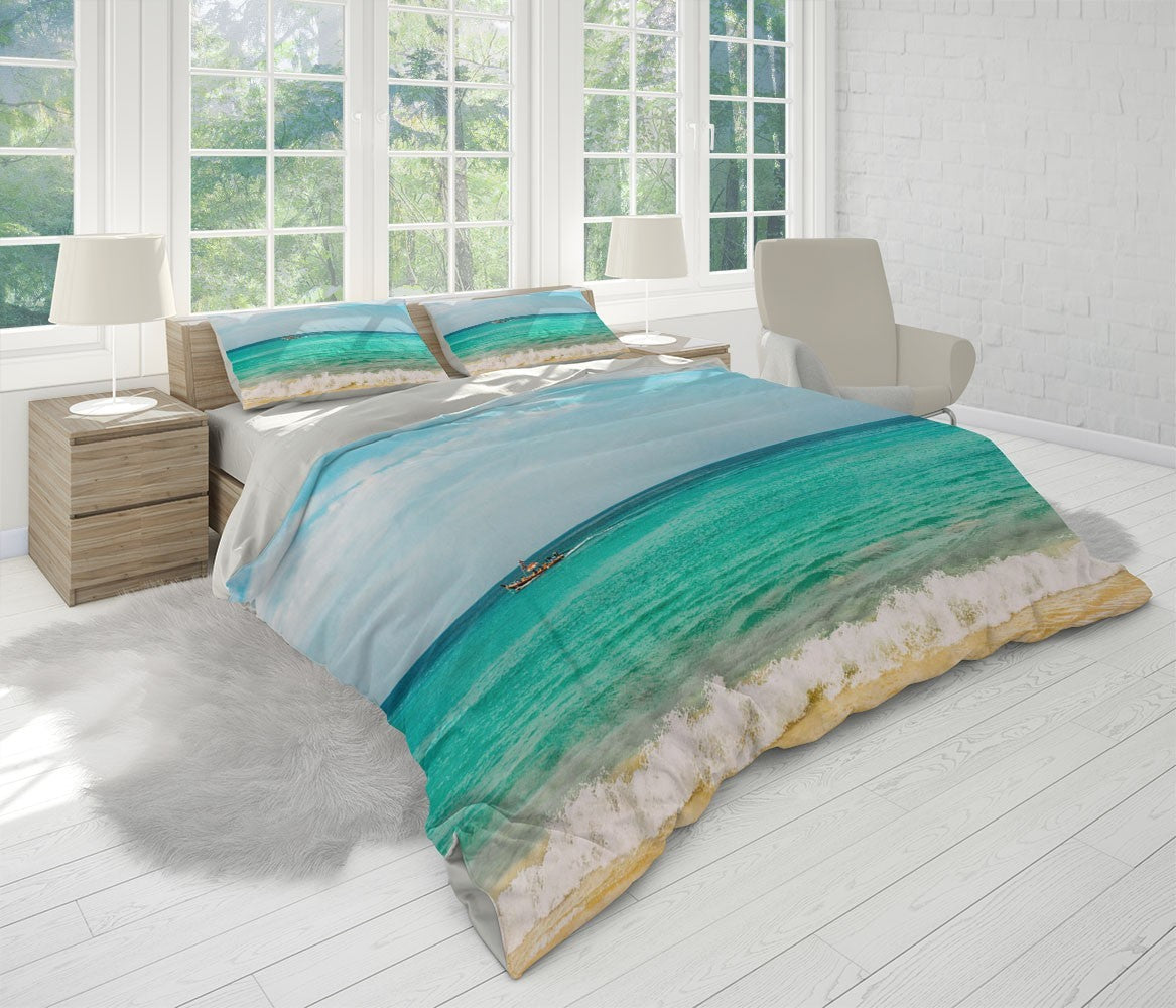 Boat Wave Duvet Cover Set W Pillow Cover, Green Beach Beach 3D Quilt Cover, Single Double Queen King Size Doona Cover
