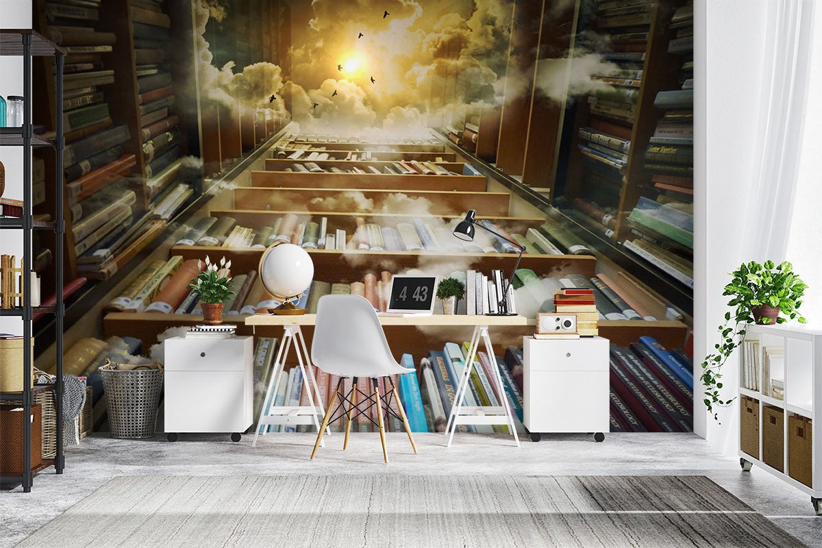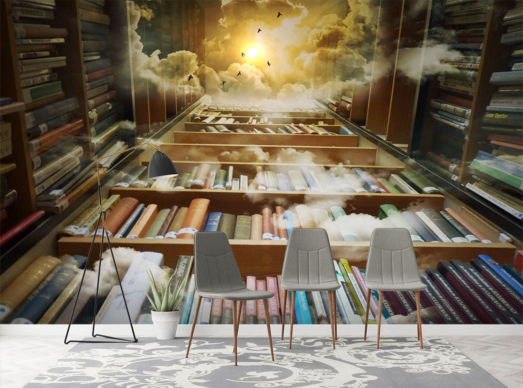 Book Shelves Art Fantasy Bright Wallpaper Mural,Self-Adhesive Peel And Stick 3D Wall Decal,Removable Designer Wall Decor