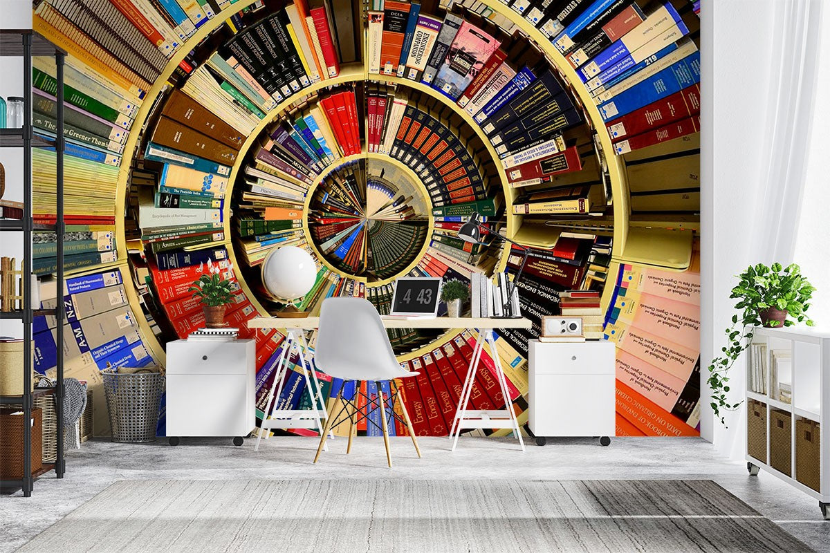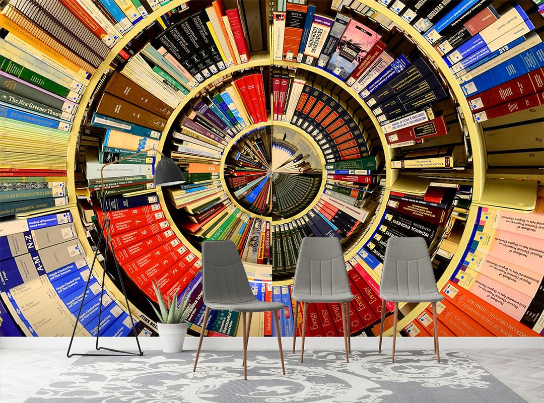 Book Shelves Texture Patterns Bright Wallpaper Mural,Self-Adhesive Peel And Stick 3D Wall Paper,Designer Australian Company Wall Decor