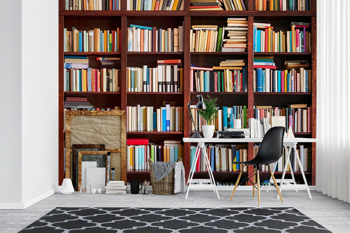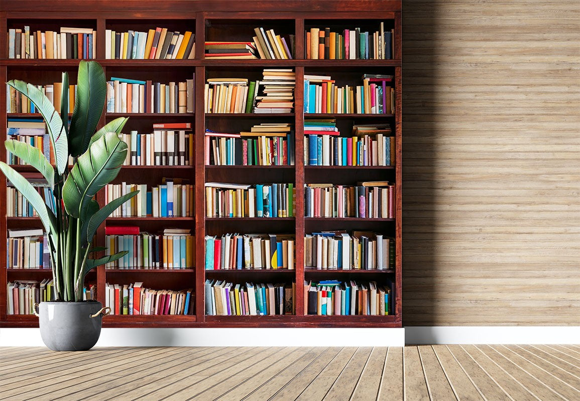 Bookshelf Art Pop Art Brown Wallpaper Mural,Self-Adhesive Peel And Stick 3D Wall Paper,Australian Company Designer Wall Decor