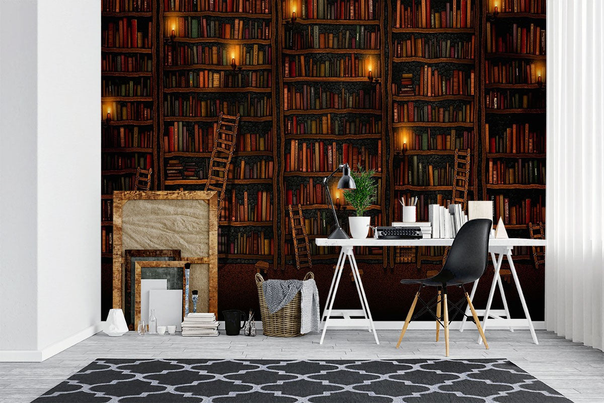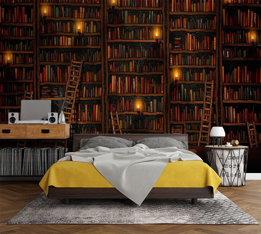 Bookshelf Art Pop Art Brown Wallpaper Mural,Self-Adhesive Peel And Stick 3D Wall Decal,Removable Australian Company Wall Decor