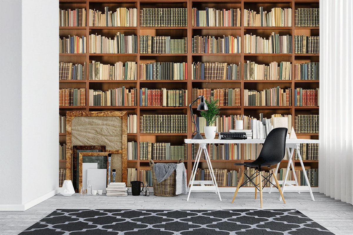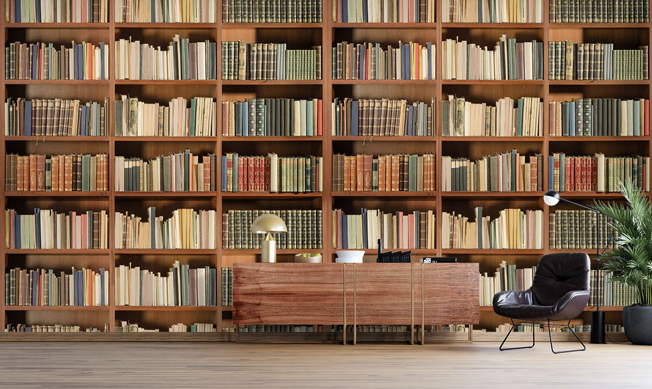 Bookshelf Art Pop Art Brown Wallpaper Mural,Self-Adhesive Peel And Stick 3D Wall Decal,Designer Australian Company Wall Decor
