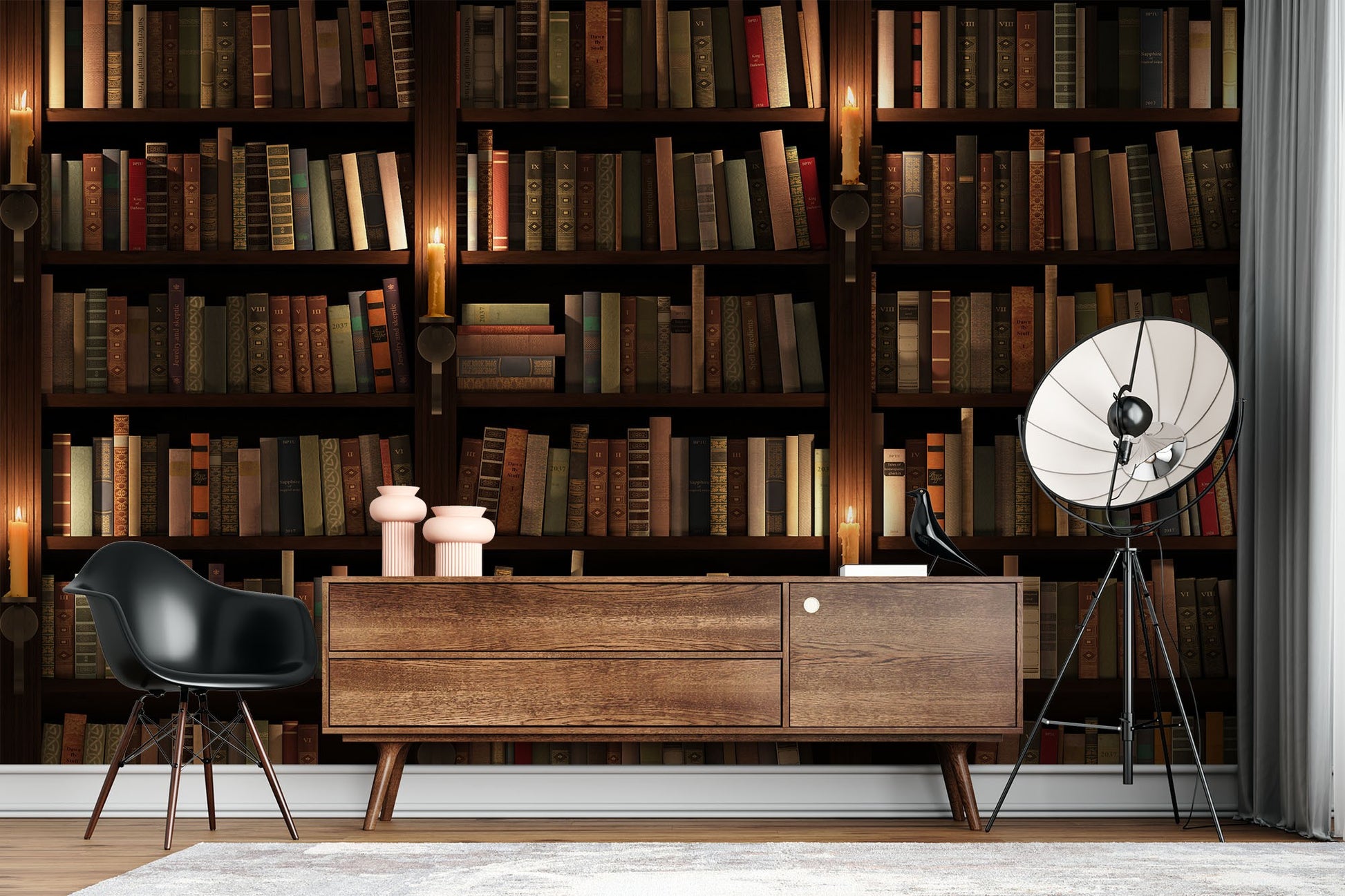 Bookshelf Pop Art Brown Wallpaper Mural