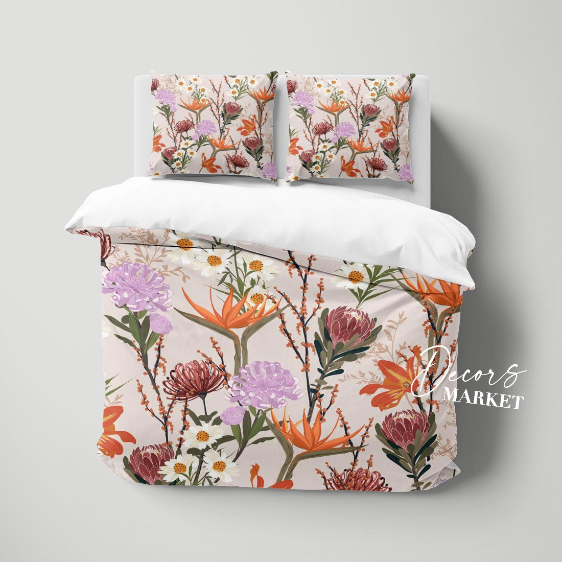 Botanical Bird Paradise Duvet Cover Set w Pillowcases, Pink Floral Patterns 3D Quilt Cover, 3pc Single Double Queen King Size Doona Cover