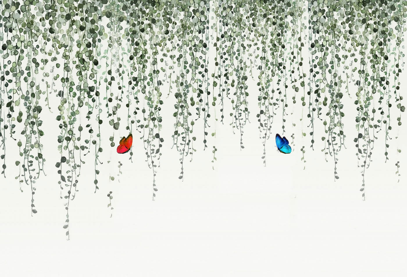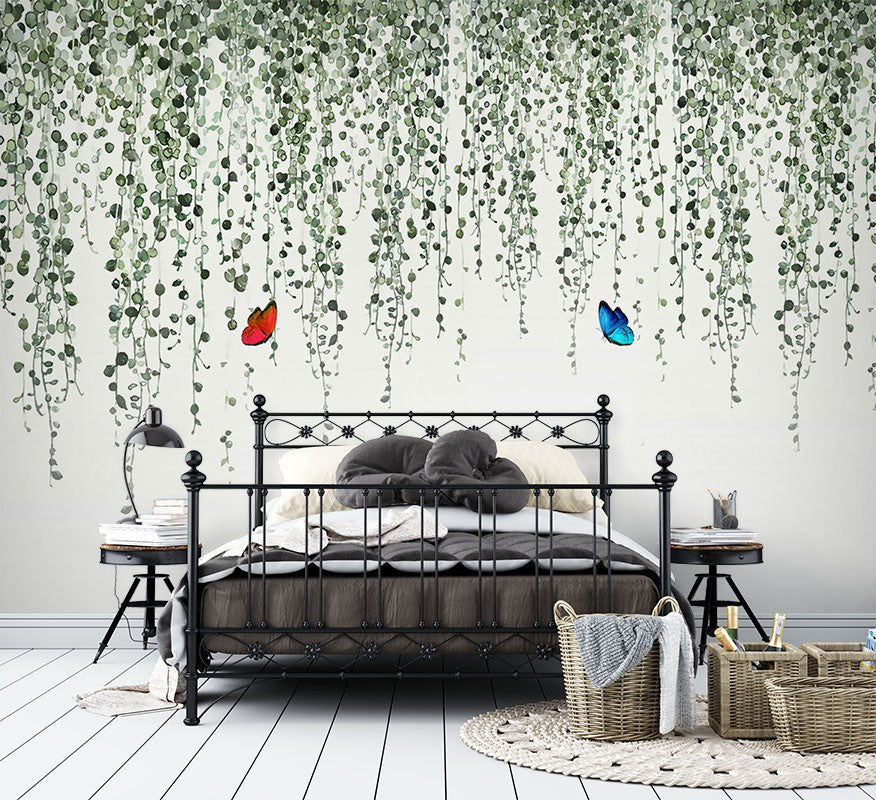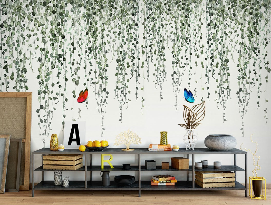 Branches Willow Floral Leaves Green Wallpaper Mural,Self-Adhesive Peel And Stick 3D Wall Paper,Designer Removable Wall Decor