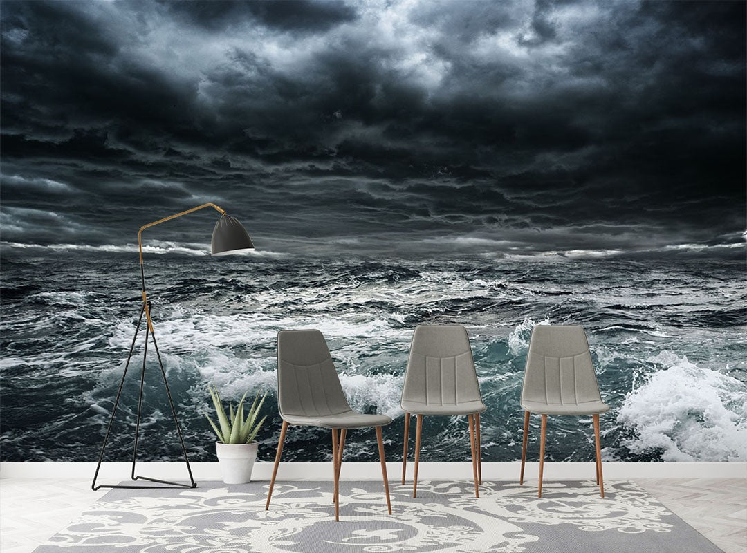 Brewing Storm Nature Sky Black Wallpaper Mural,Self-Adhesive Peel And Stick 3D Wall Mural,Bedroom Designer Wall Decor
